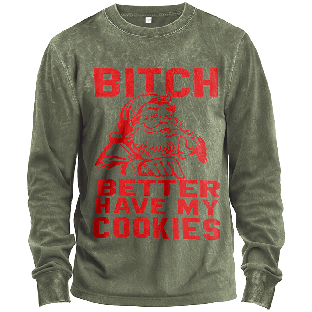 Lustiges Weihnachtsmann-Keks-Langarmshirt