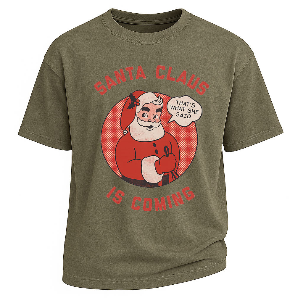Lustiges Weihnachts-T-Shirt „Der Weihnachtsmann kommt“
