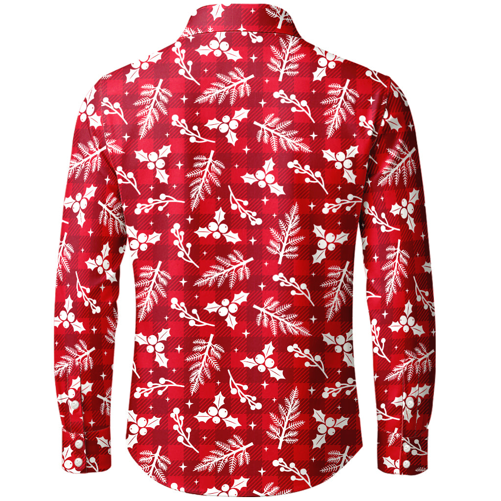 Rot kariertes Langarm-Weihnachtshemd mit Stechpalmen- und Kiefernmotiv