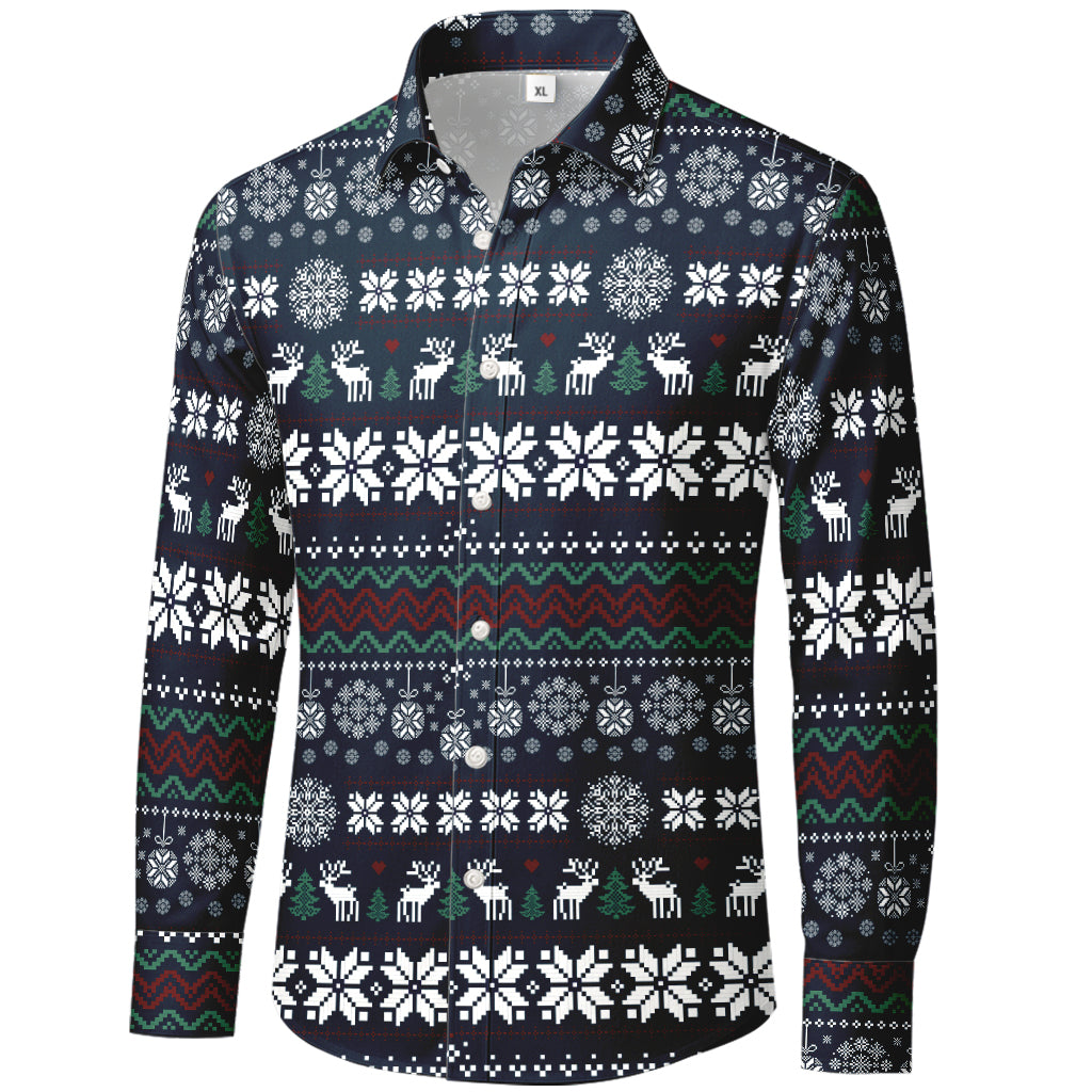 Weihnachtshemd mit festlichem Rentier- und Zuckerstangenmotiv und langen Ärmeln