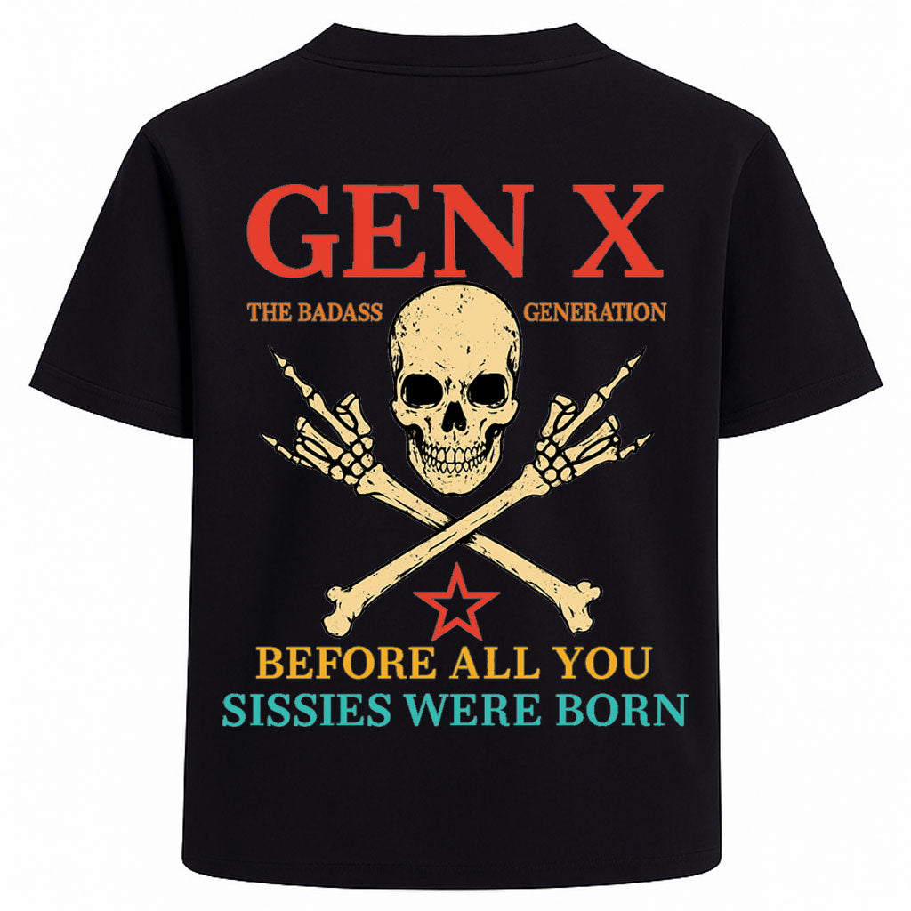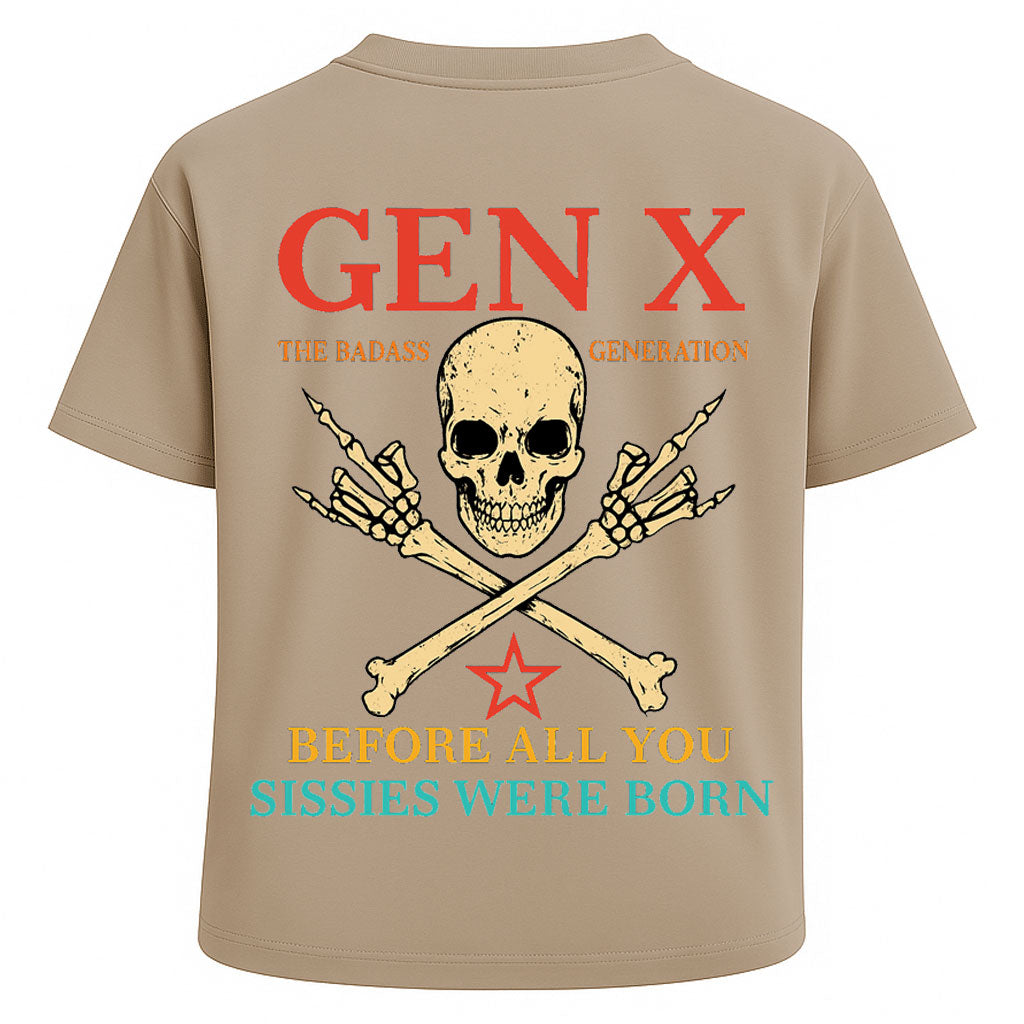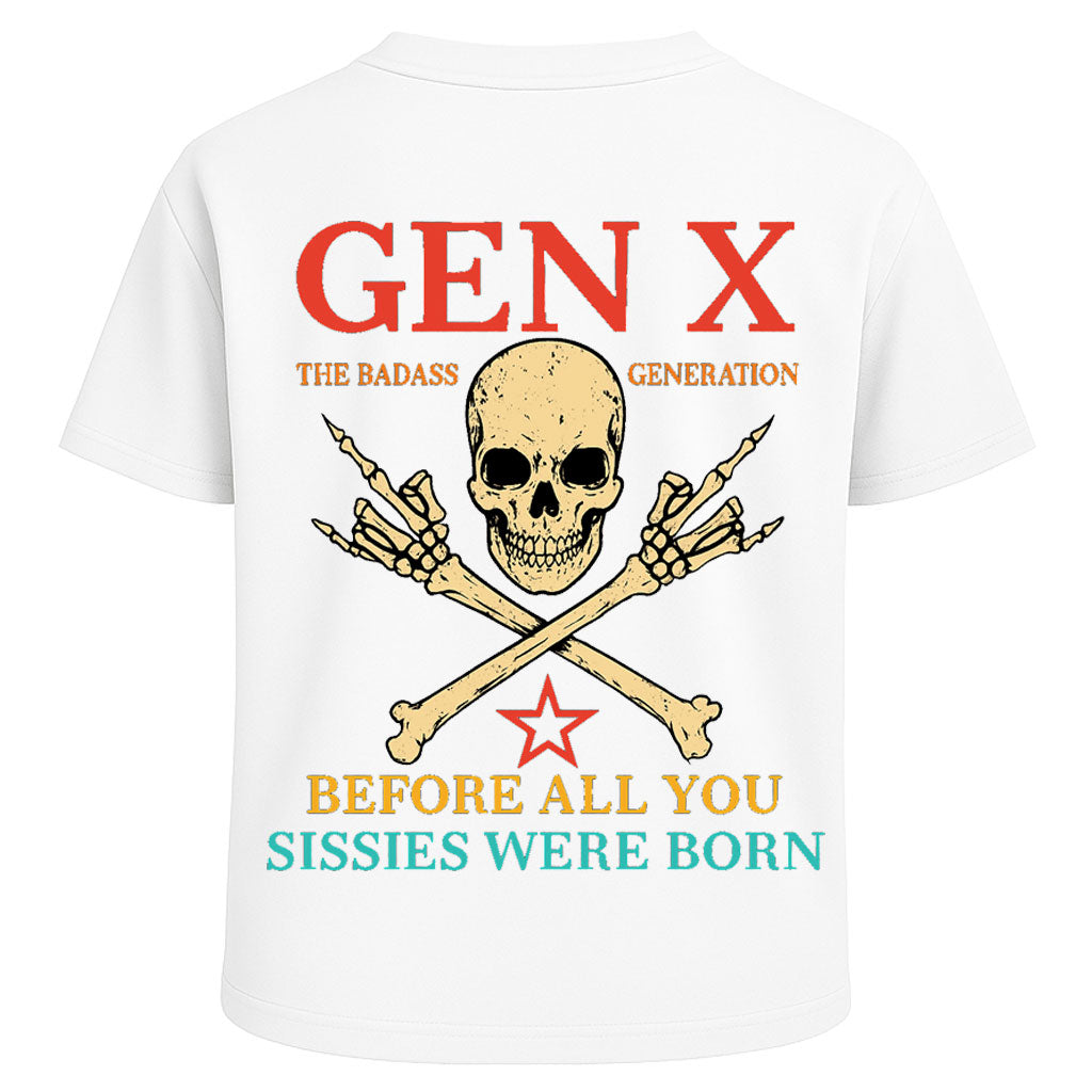 Zeig deinen Stolz auf die Generation X mit LouMarks Oversize-T-Shirt „Gen X Skull“. Hergestellt aus schwerer 260g-Baumwolle, bietet dieses T-Shirt Komfort und Langlebigkeit in einer lässigen Oversize-Passform. Der markante Rückenprint zeigt einen Totenkopf mit gekreuzten Knochen und Rocker-Zeichen, hervorgehoben durch die unmissverständliche Botschaft: „GEN X – Die härteste Generation – Bevor ihr Weicheier geboren wurdet.“ Eine rebellische Hommage an die Entschlossenheit und Stärke einer Generation, die sich von der Masse abhebt.