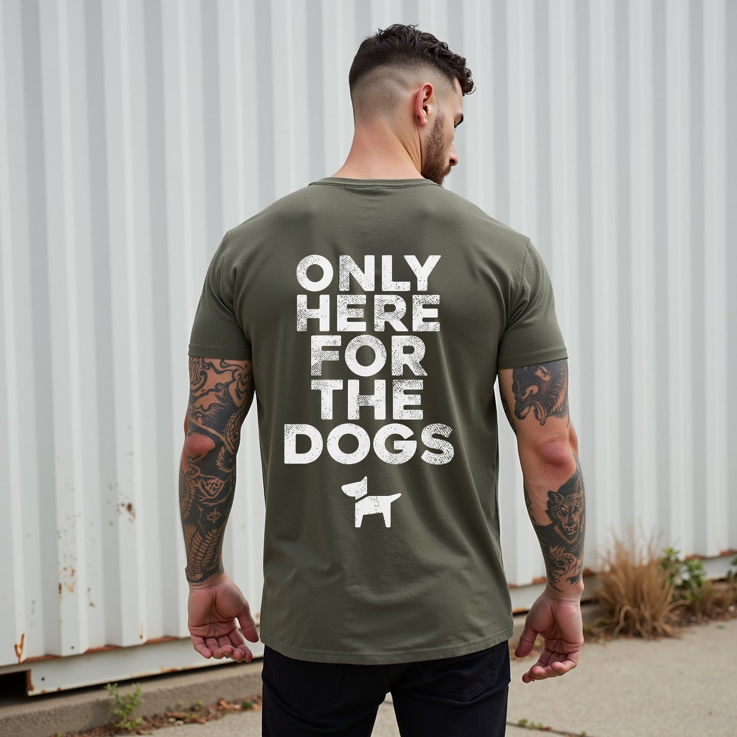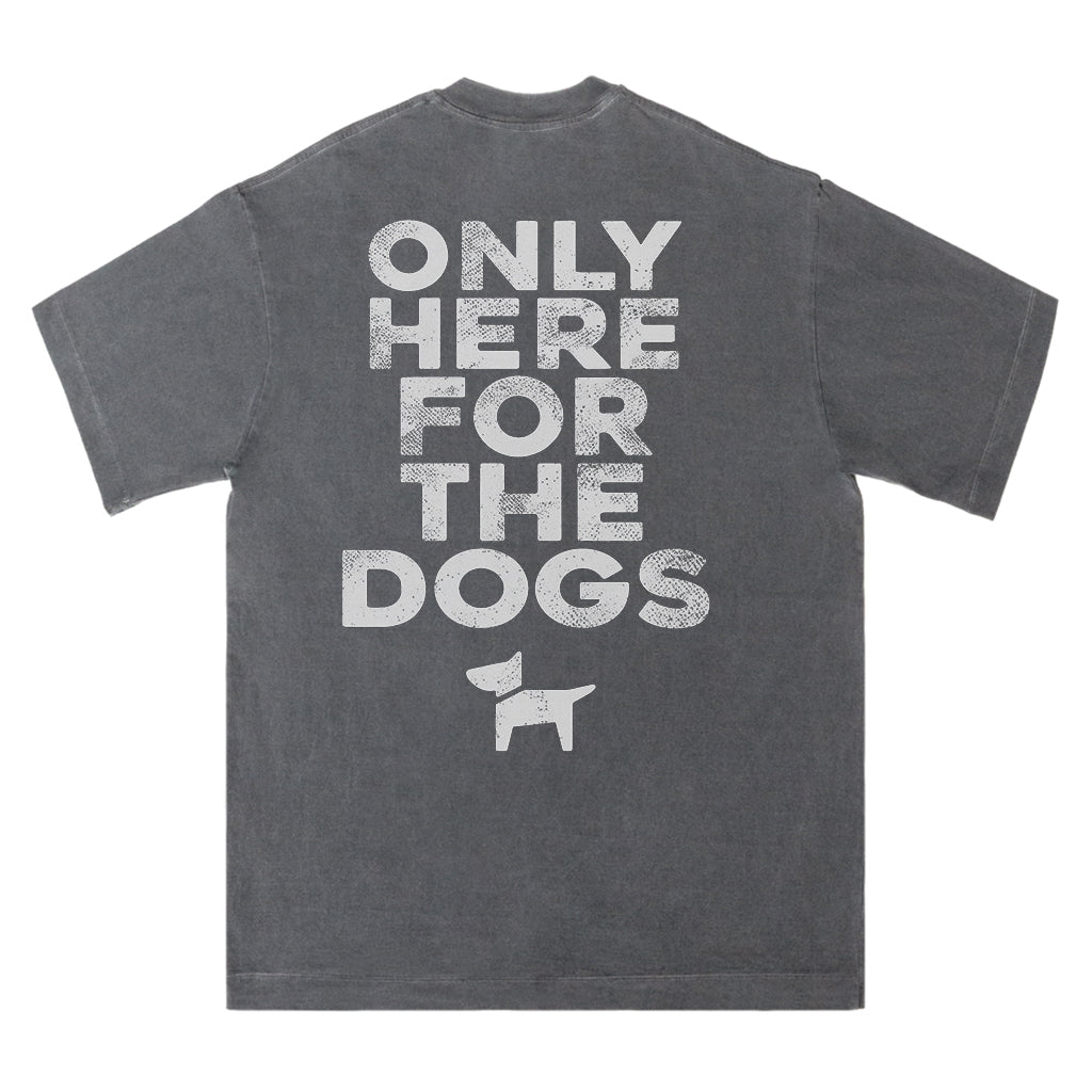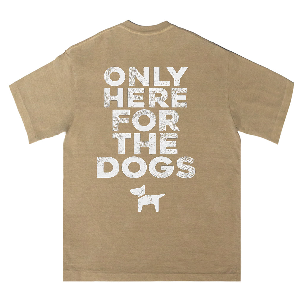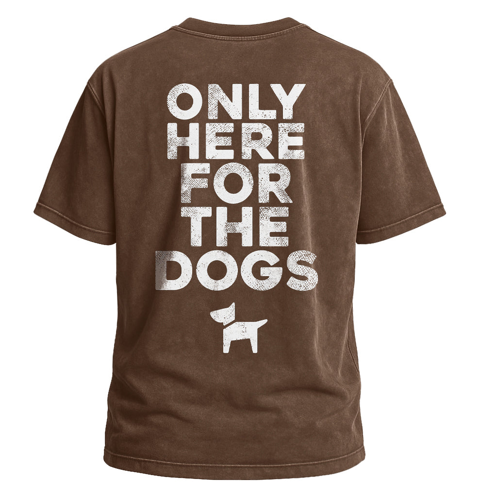 Zeigen Sie Ihre Liebe zu Hunden mit LouMarks „Only Here for the Dogs“-T-Shirt. Dieses verwaschene braune Shirt ziert die auffällige weiße Schrift „ONLY HERE FOR THE DOGS“ über einer schlichten Hundesilhouette. Hergestellt aus 100 % Baumwolle für bequemen, lässigen Tragekomfort mit verspieltem Charme.