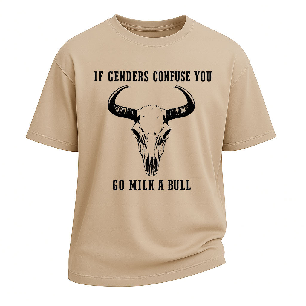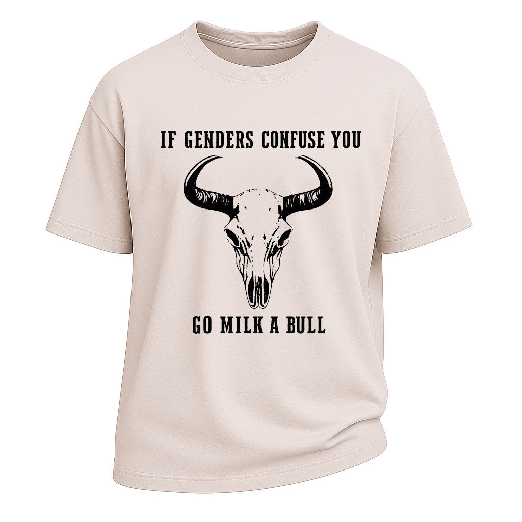 Daring, bold, and unapologetic — the LouMark "Go Milk a Bull" t-shirt is made for those who wear humor with a sharp edge. Featuring a rugged bull skull graphic paired with a sarcastic slogan, this tee embodies the raw spirit of western toughness and cowboy humor. Crafted from 260G heavy-weight 100% cotton, it offers a structured oversized fit, perfect for casual streetwear or western events.