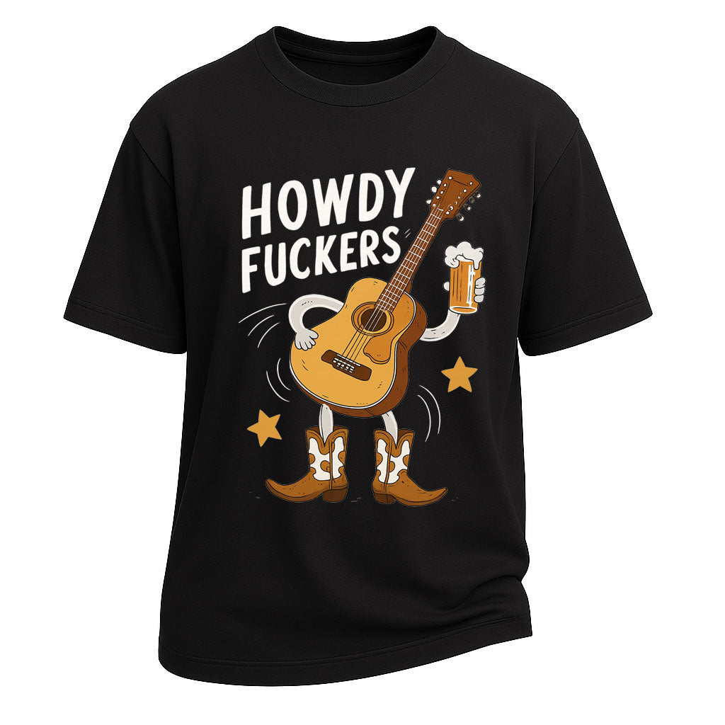 Howdy Fuckers Cowboy Guitar Graphic T-shirt