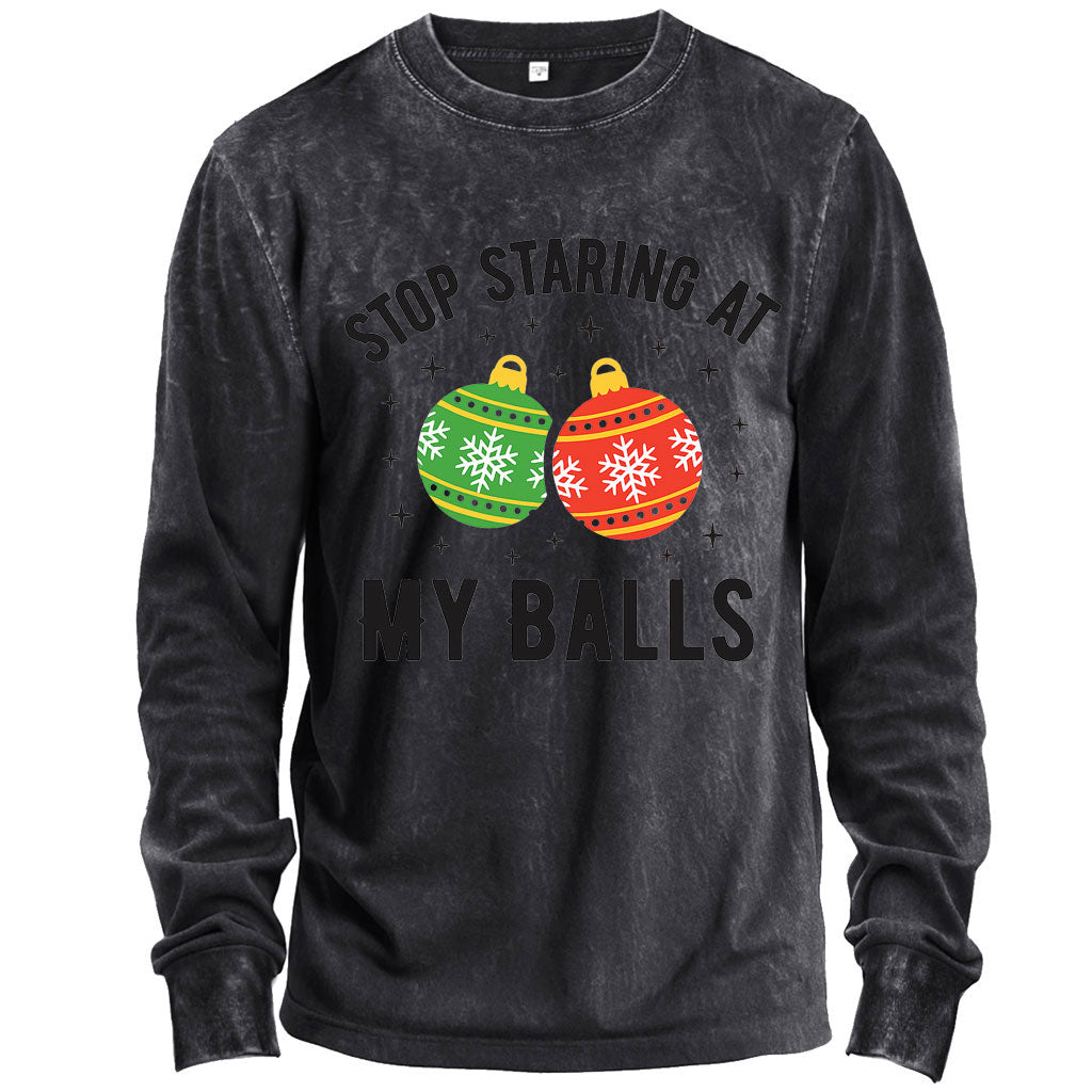 Hör auf, meine Eier anzustarren – Weihnachts-Langarmshirt
