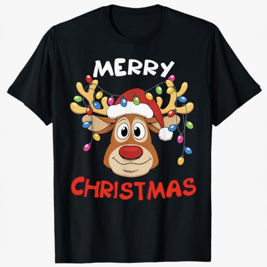 Rentierlichter Frohe Weihnachten T-Shirt
