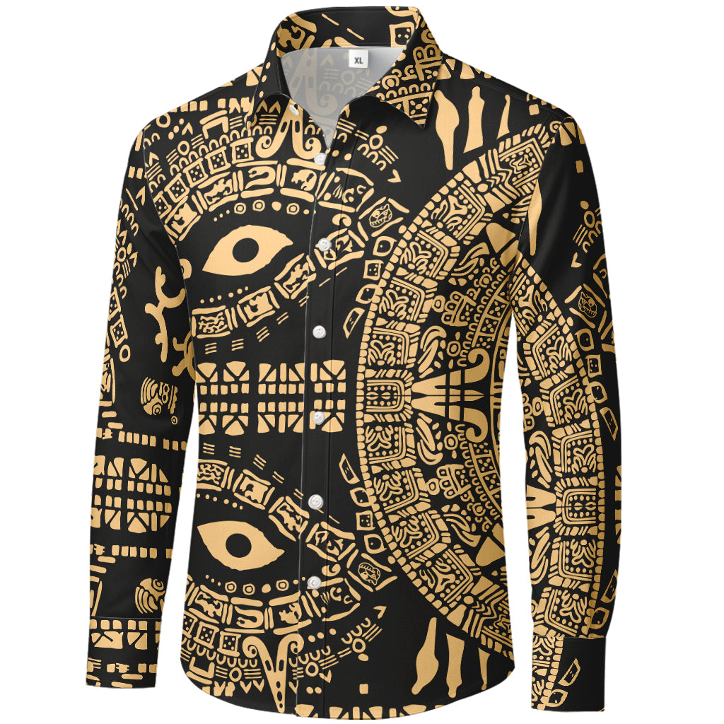 Langarmshirt mit goldenem Aztekenkalender-Motiv