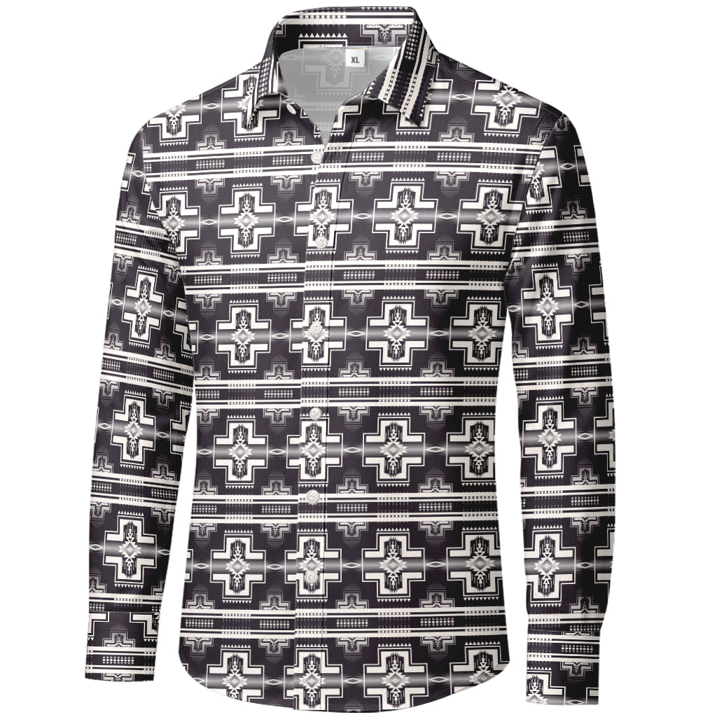 Geometrisches Langarmhemd mit Tribal-Labyrinth-Muster