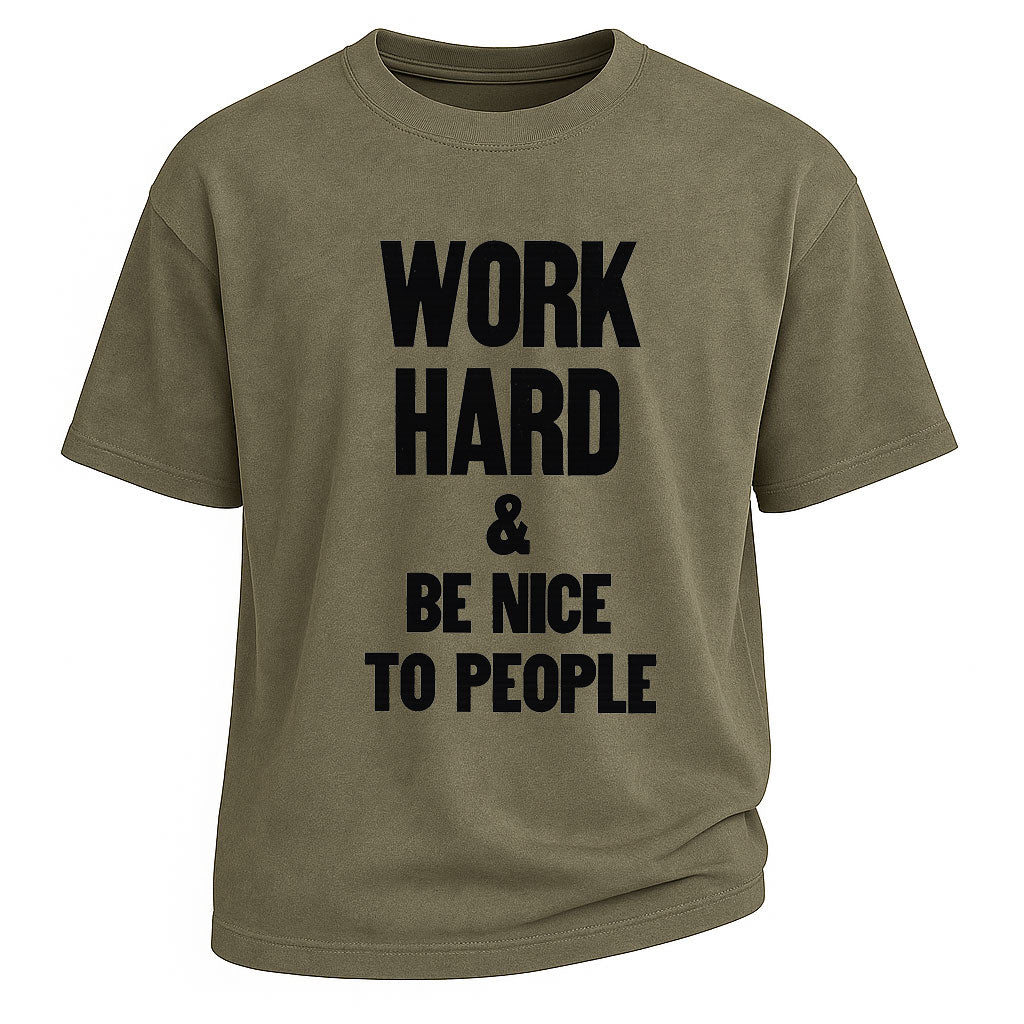 T-Shirt mit dem Aufdruck „Hart arbeiten, nett sein“