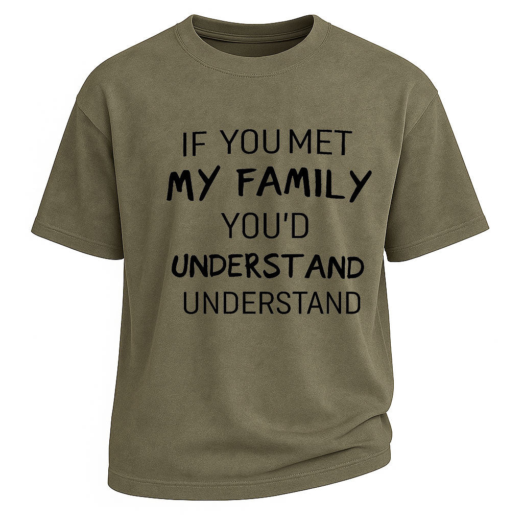 Lustiges T-Shirt mit übergroßem Grafikprint und Familienzitat