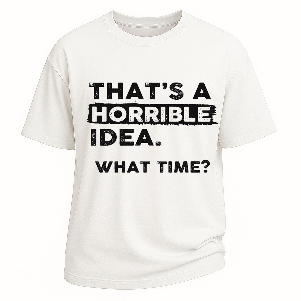 - Muster: Auffälliger Slogan „Das ist eine schreckliche Idee. Um wie viel Uhr?“
