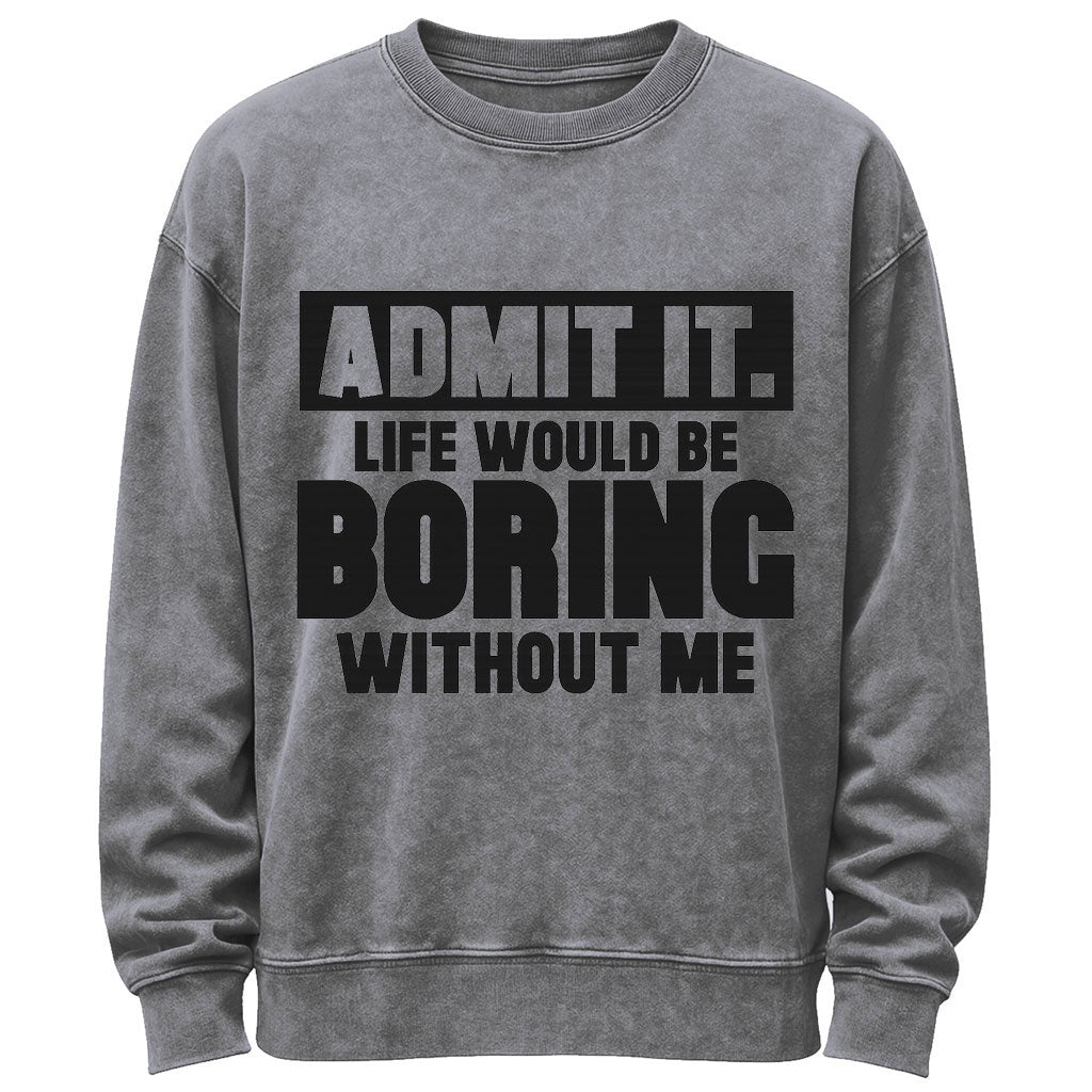 Mit dem LouMark-Sweatshirt „Admit It: Life Would Be Boring Without Me“ bleibst du warm und setzt ein Statement. Der auffällige Slogan in Blockbuchstaben vereint Humor und Komfort – perfekt für alle, die witzige Mode lieben. Gefertigt aus einem schweren 350-g-Baumwollmischgewebe, bietet es Langlebigkeit, Wärme und eine lässige Oversize-Passform – ideal für Freizeit und als zusätzliche Schicht an kühleren Tagen.