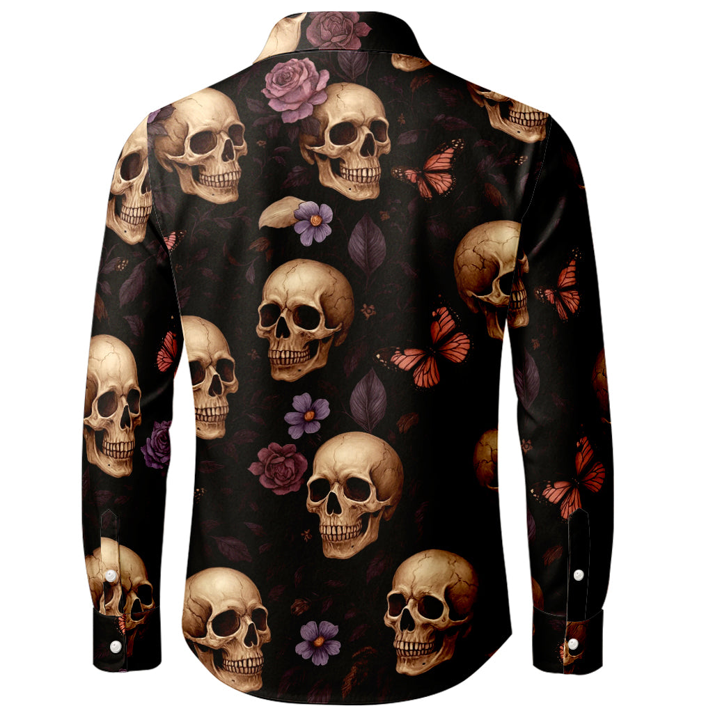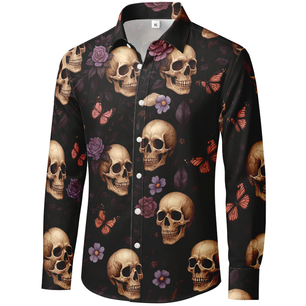 Langarmshirt mit 3D-Druck von Totenköpfen, Schmetterlingen und Blüten