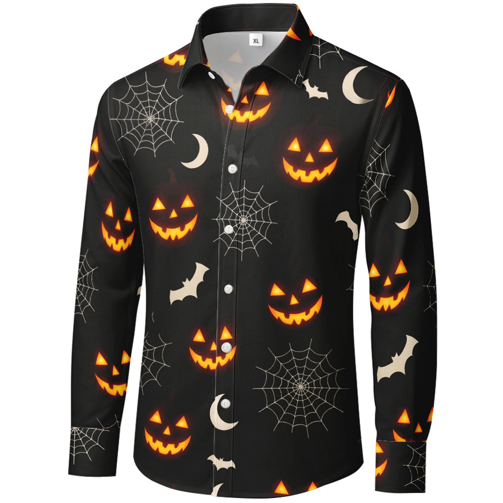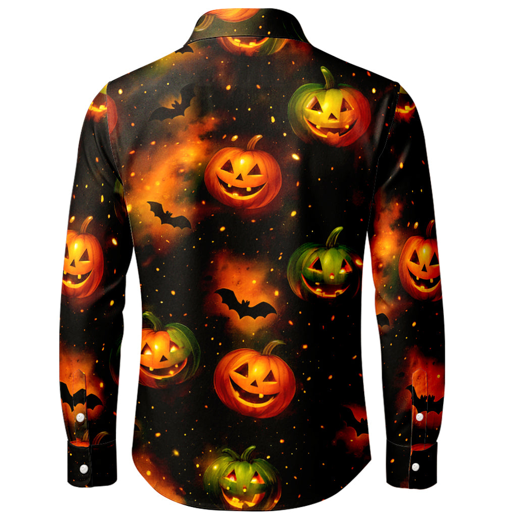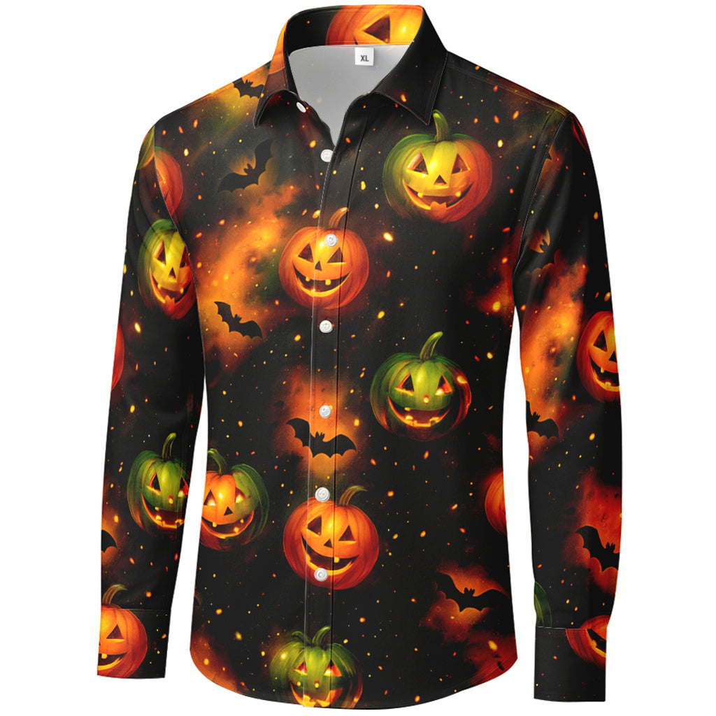 Langarmshirt mit leuchtenden Kürbislaternen und Fledermäusen im 3D-Druckverfahren