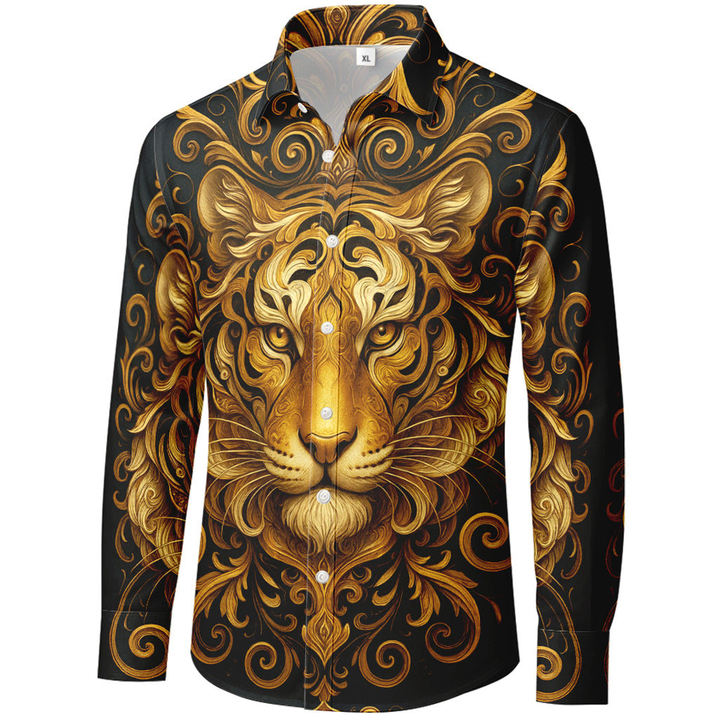 Langarmshirt mit barockem Goldtiger-3D-Druck