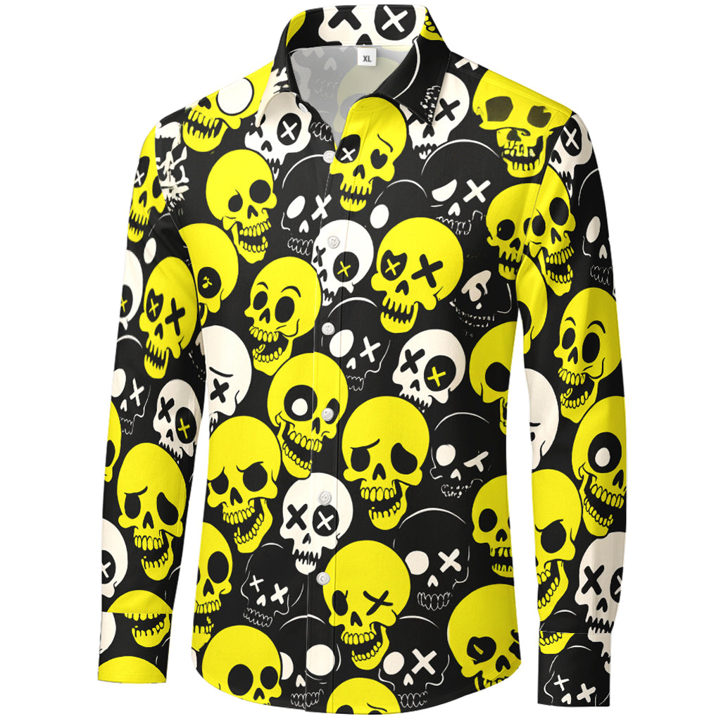 Langarmshirt mit gelbem Pop-Art-Totenkopf-3D-Druck