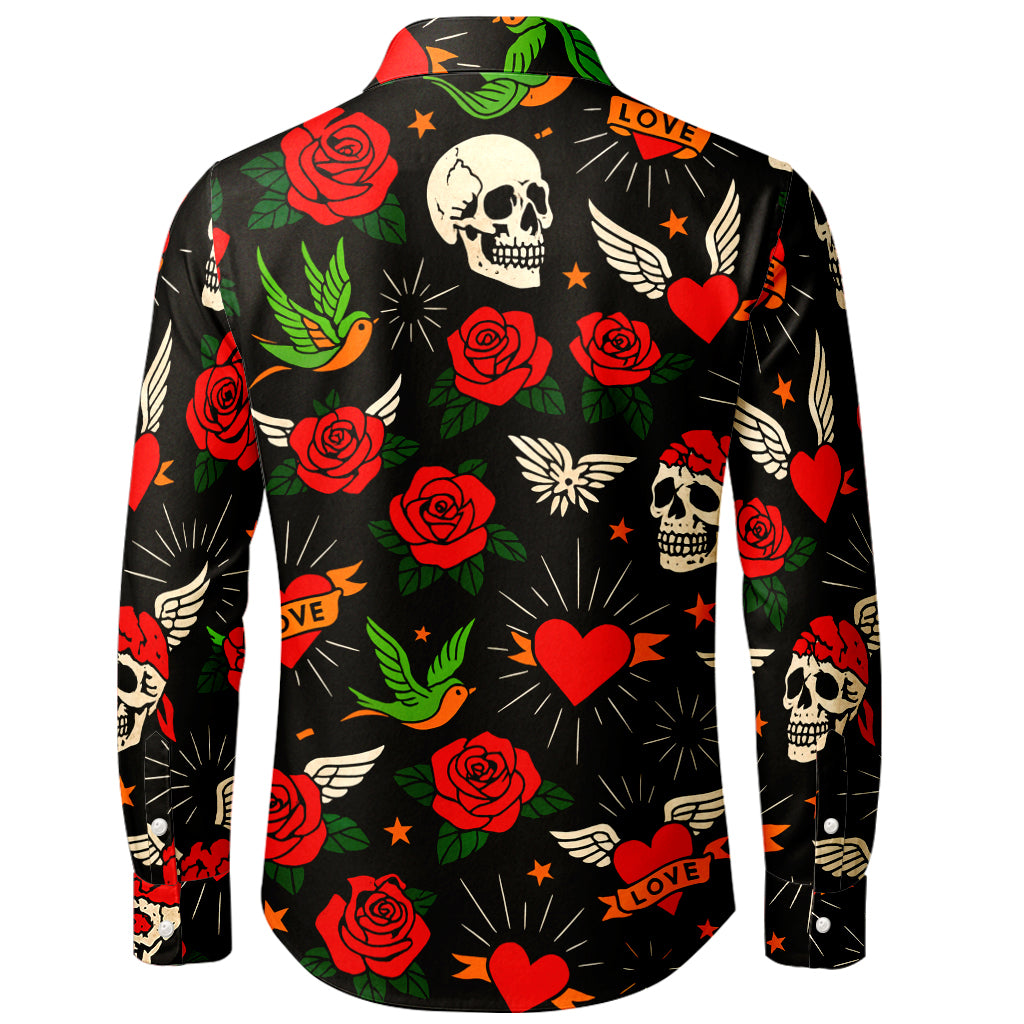 Langarmshirt mit Tattoo-Motiv „Liebe & Rosen“ (3D-Druck)
