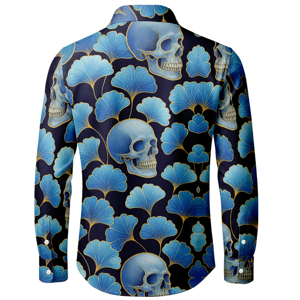 Langarmshirt mit 3D-Druck von blauen Ginkgo-Schädeln