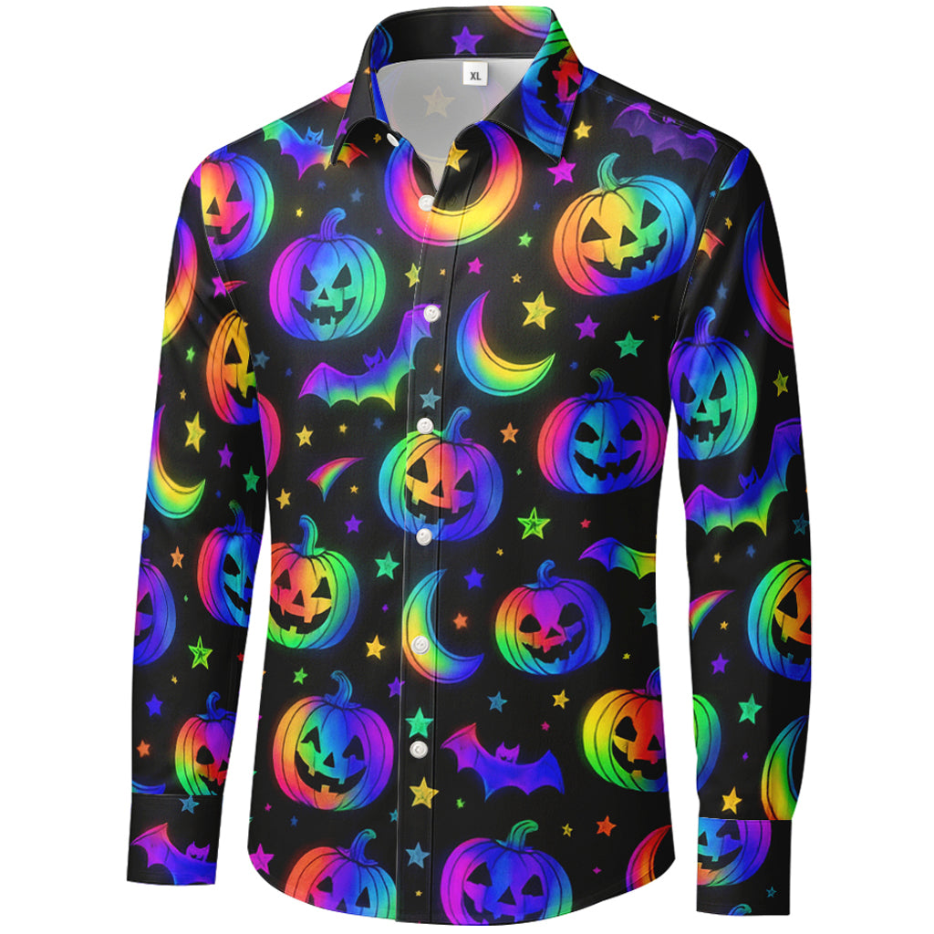 Neon-Regenbogen-Kürbislaternen-3D-Druck-Langarmshirt