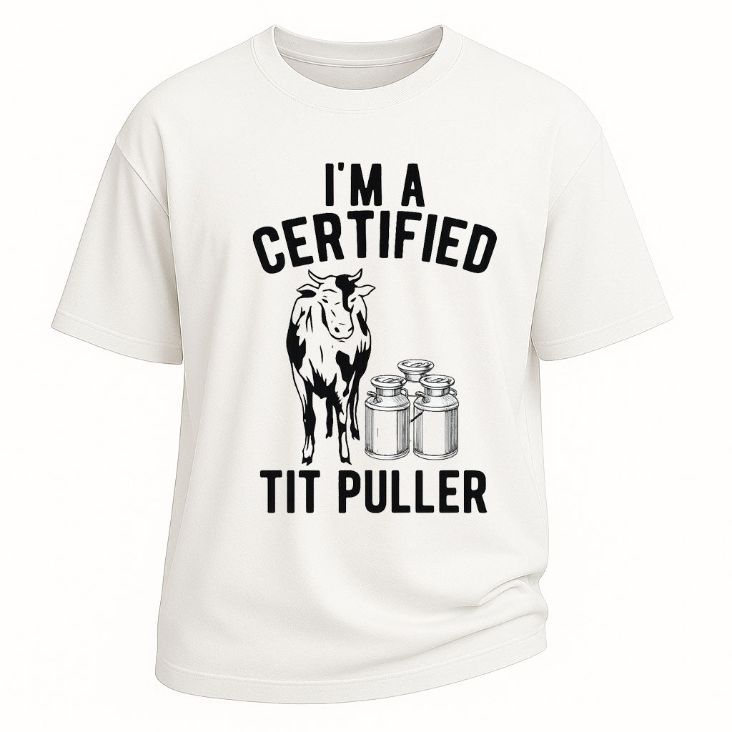 Ich bin ein zertifizierter Brustzieher – Lustiges Bauern-T-Shirt