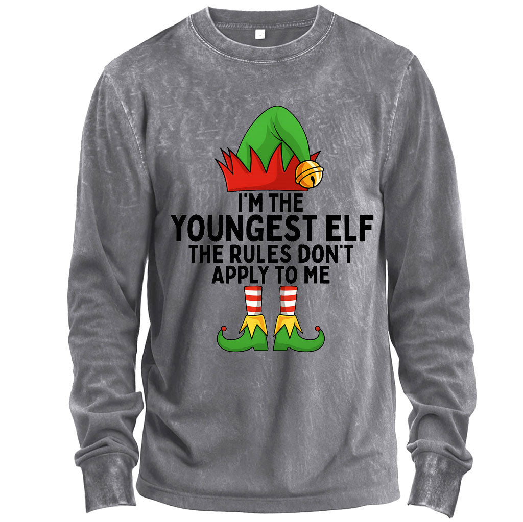 Maglietta natalizia a maniche lunghe "Sono l'elfo più giovane"