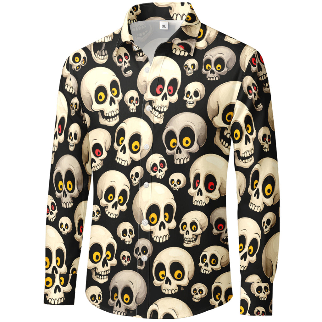 Maglietta a maniche lunghe con stampa 3D di teschi dei cartoni animati dagli occhi grandi