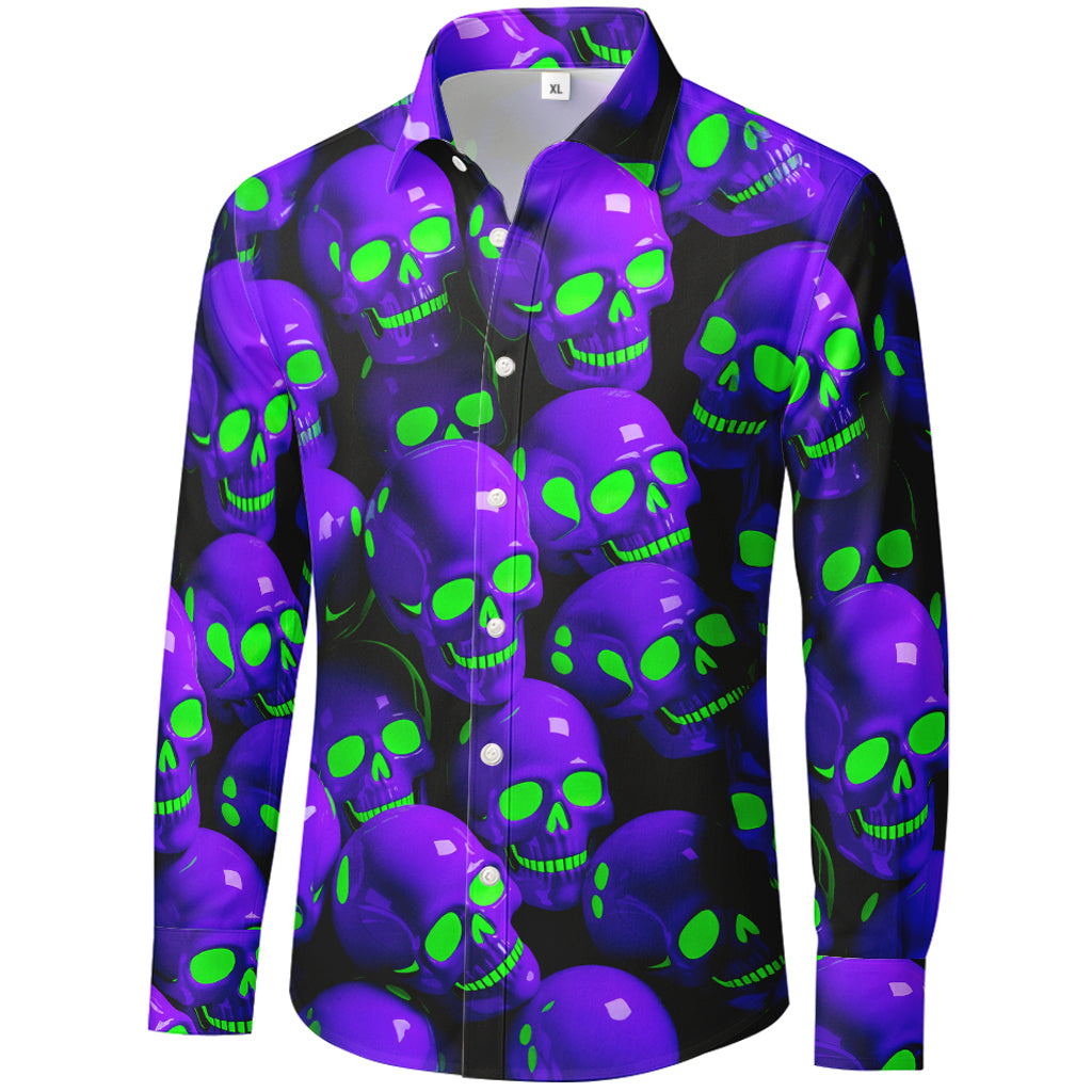 Maglietta a maniche lunghe con stampa 3D di teschi viola neon
