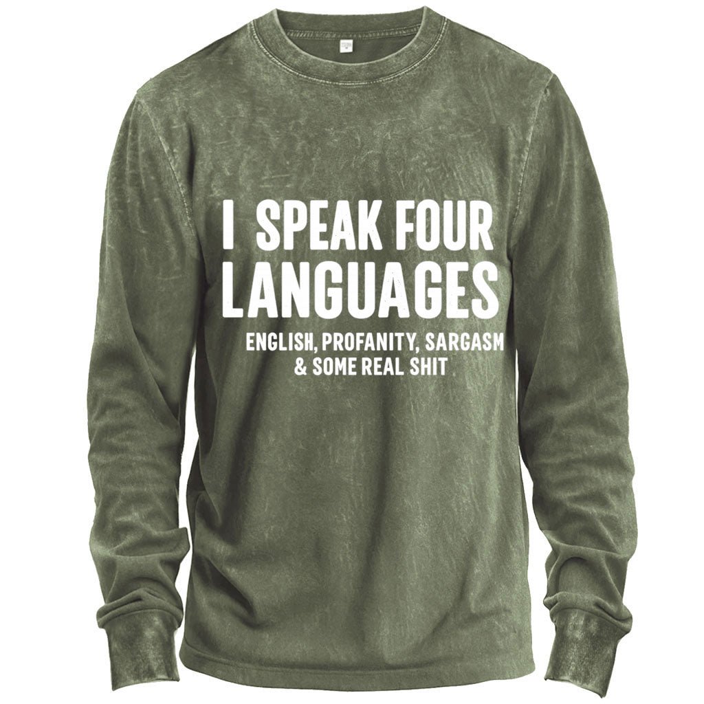 Maglietta divertente a maniche lunghe "Parlo quattro lingue"