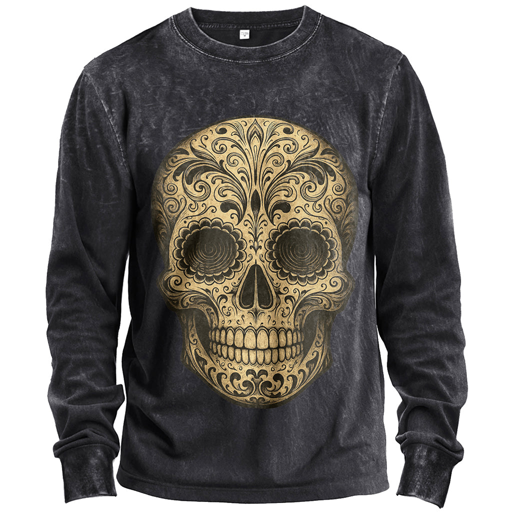 Maglietta vintage a maniche lunghe con teschio di zucchero