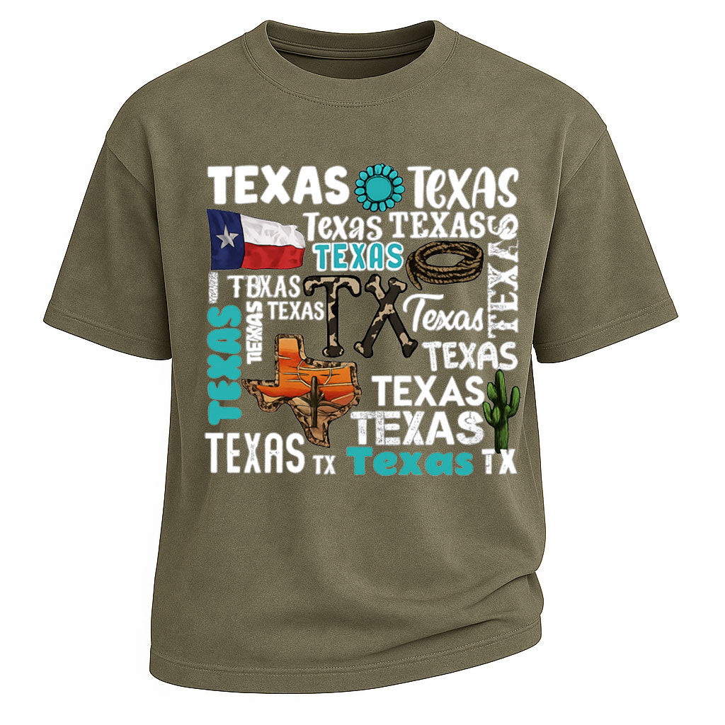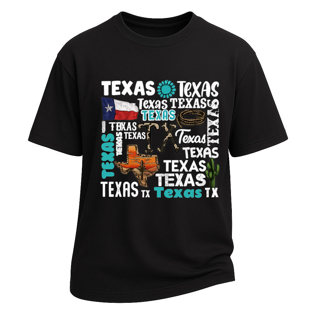 Maglietta grafica con collage tipografico e orgoglio statale del Texas