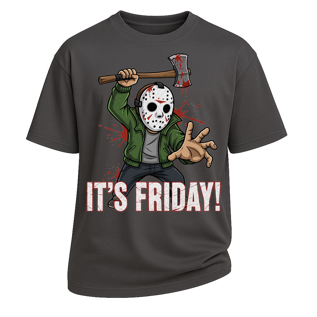 Festeggia il venerdì con un tocco di umorismo dark con la t-shirt oversize "It's Friday" di LouMark. Realizzata in 100% cotone pesante da 260 g, questa maglietta unisce comfort e resistenza in una vestibilità oversize. Caratterizzata da un'audace stampa ispirata all'horror raffigurante una figura mascherata che brandisce un'ascia con dettagli a schizzi di sangue, è perfetta per gli appassionati di classici cult e per chi ama trascorrere il weekend con un tocco di dark fun.