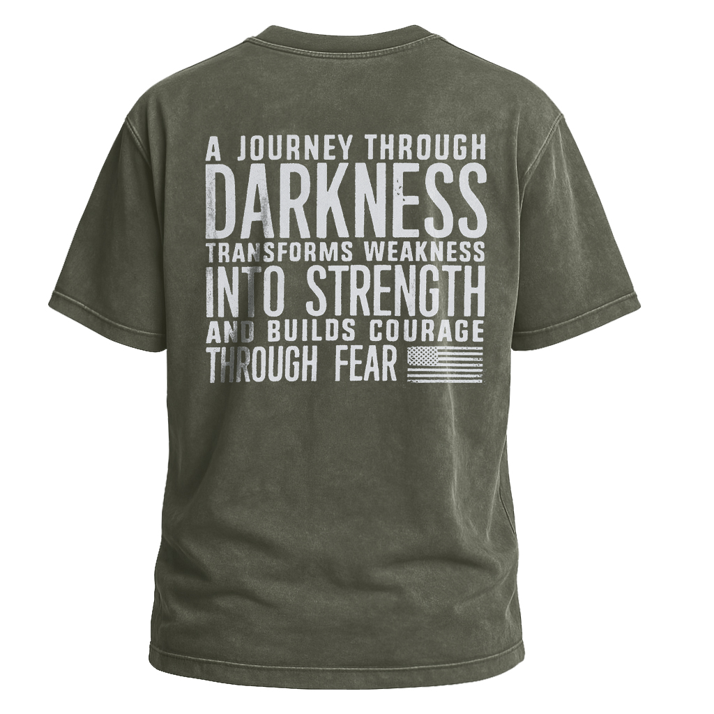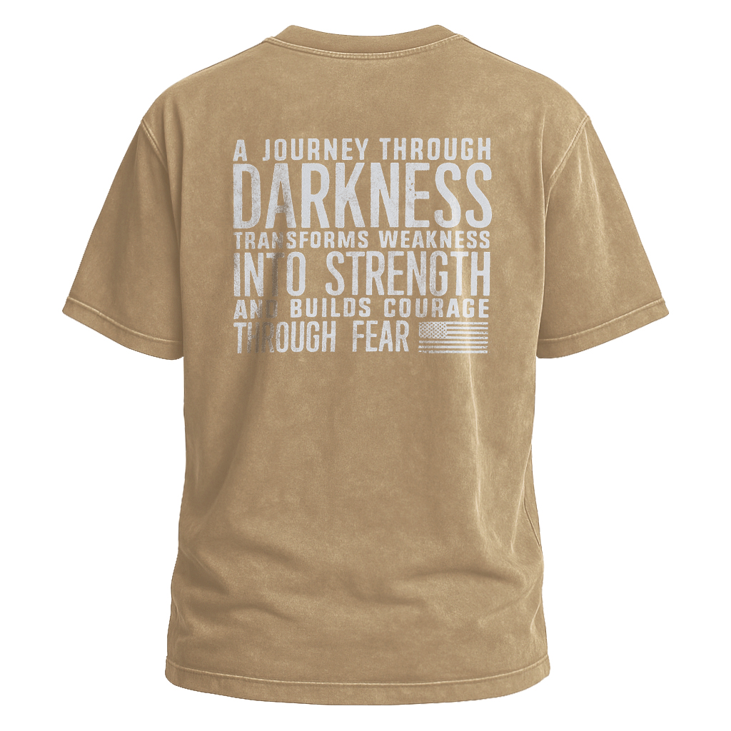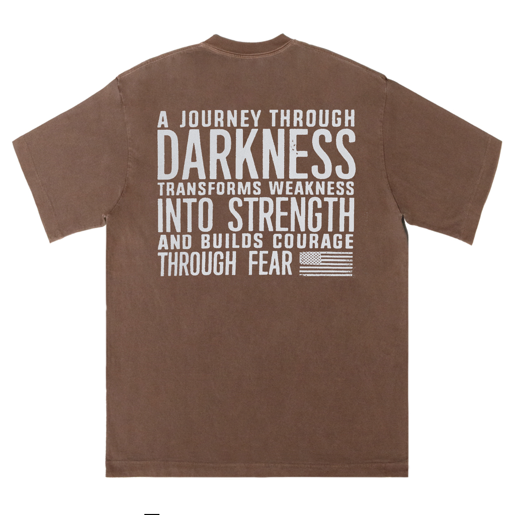 Abbraccia la resilienza con la maglietta Journey Through Darkness di LouMark. Questa maglietta marrone slavato presenta una scritta bianca in grassetto sul retro che recita "UN VIAGGIO ATTRAVERSO L'OSCURITÀ TRASFORMA LA DEBOLEZZA IN FORZA E COSTRUISCE IL CORAGGIO ATTRAVERSO LA PAURA". Realizzata in cotone al 100%, per un abbigliamento casual comodo e con un messaggio di empowerment.