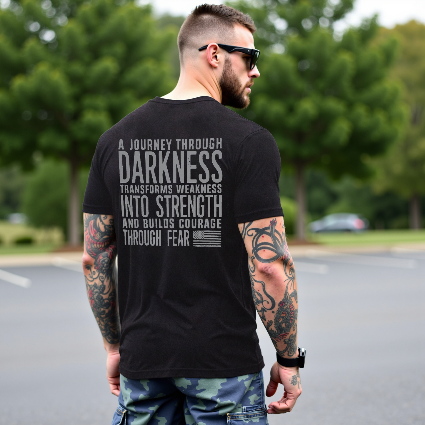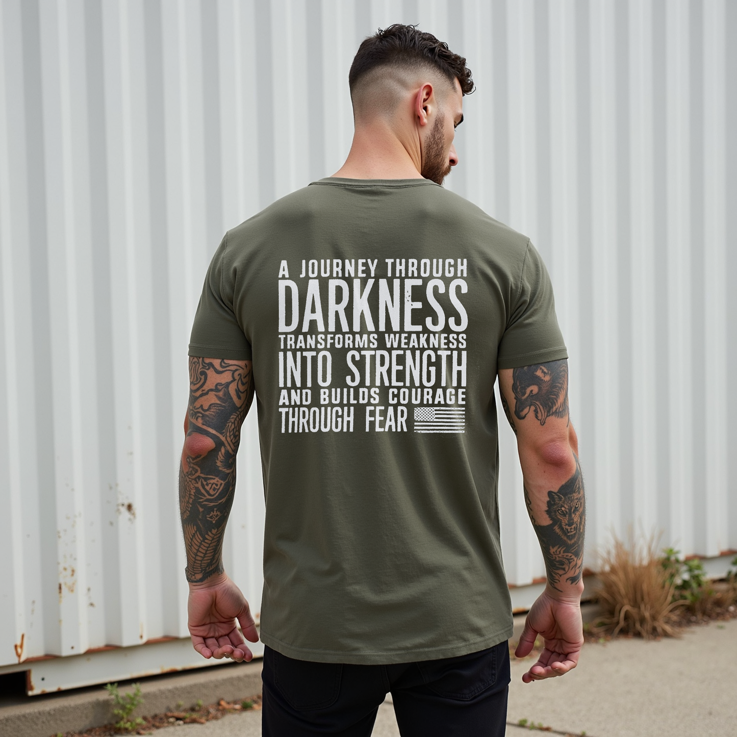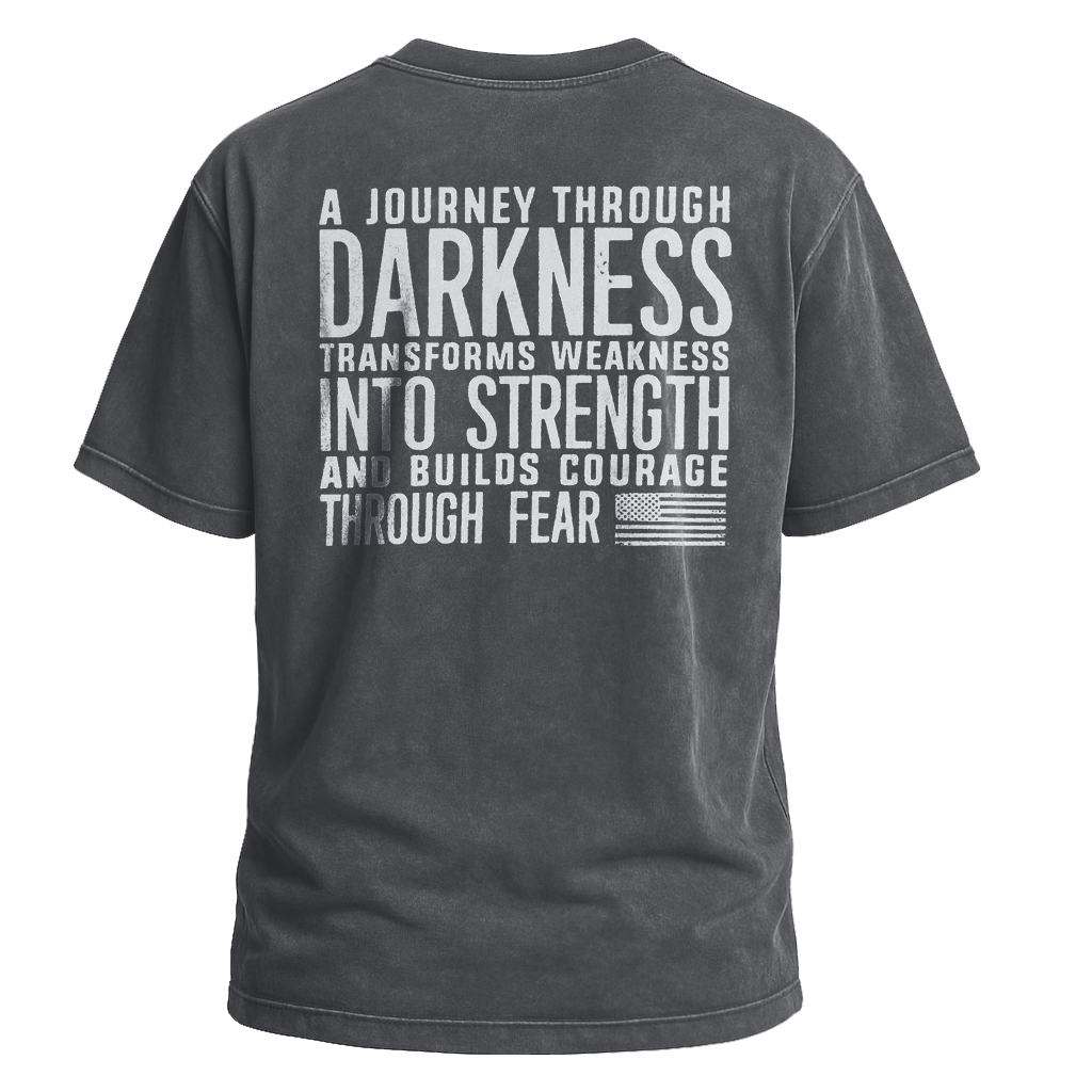 Abbraccia la resilienza con la maglietta Journey Through Darkness di LouMark. Questa maglietta marrone slavato presenta una scritta bianca in grassetto sul retro che recita "UN VIAGGIO ATTRAVERSO L'OSCURITÀ TRASFORMA LA DEBOLEZZA IN FORZA E COSTRUISCE IL CORAGGIO ATTRAVERSO LA PAURA". Realizzata in cotone al 100%, per un abbigliamento casual comodo e con un messaggio di empowerment.