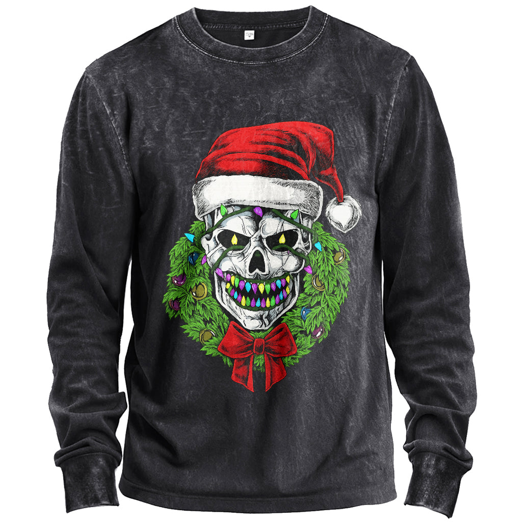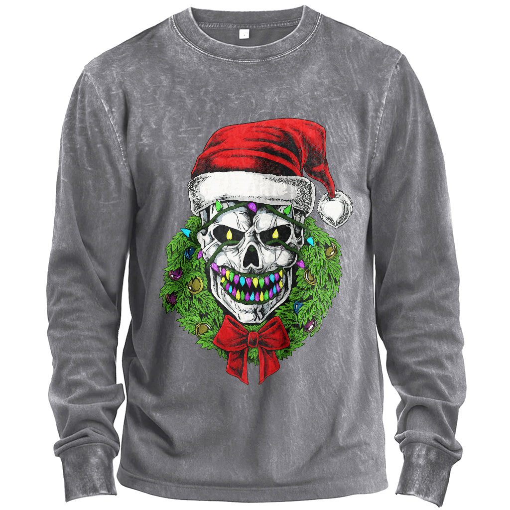 Maglietta a maniche lunghe con ghirlanda di teschio di Babbo Natale