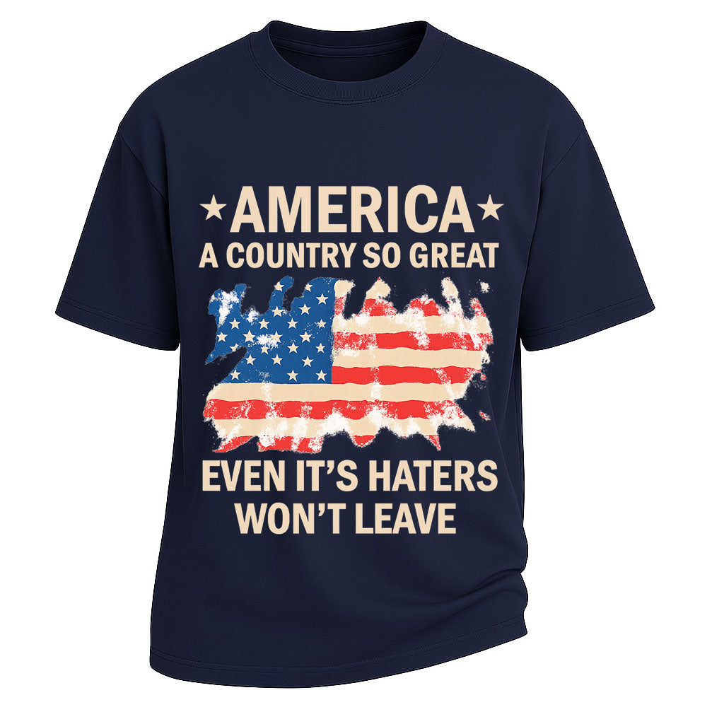 Atriotismo, sarcasmo e orgoglio sfacciato: tutto cucito in una maglietta senza scuse. La maglietta "America So Great" di LouMark presenta la sagoma della bandiera americana invecchiata su una base nera, con la battuta finale: nemmeno i suoi detrattori se ne andranno.