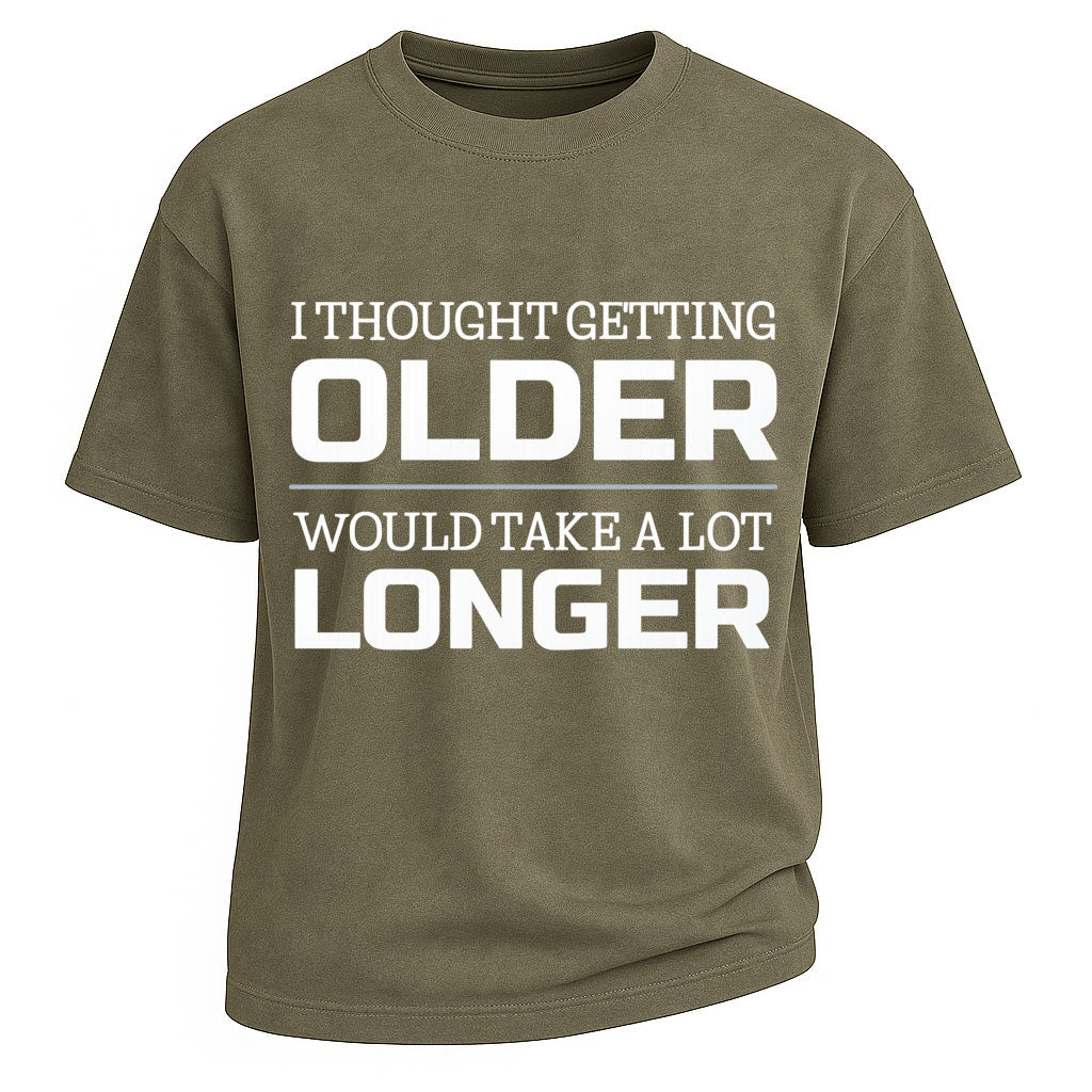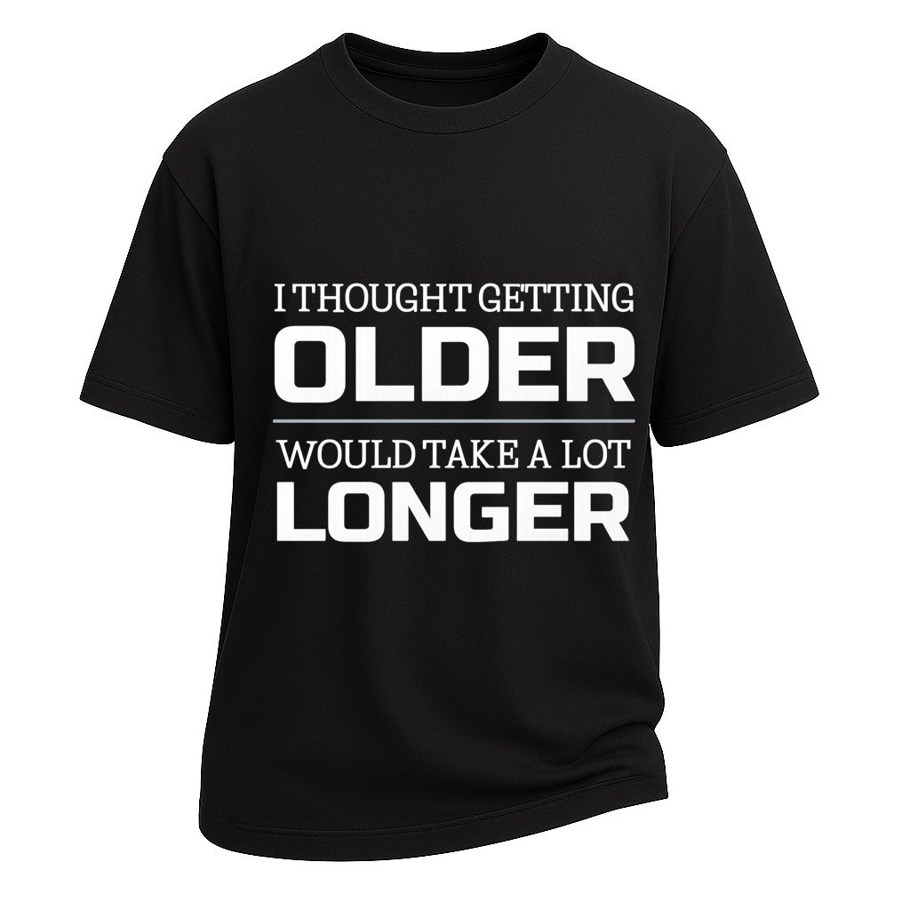 L'invecchiamento si avvicina più velocemente di una multa per eccesso di velocità. Questa maglietta LouMark cattura il momento universale della mezza età con umorismo pungente e design audace. "Pensavo che invecchiare avrebbe richiesto molto più tempo" è stampato a caratteri cubitali, con orgoglio e chiarezza, in un lettering pulito e ad alto contrasto, perché il tempo vola, e così anche le ultime stronzate che ti restano.