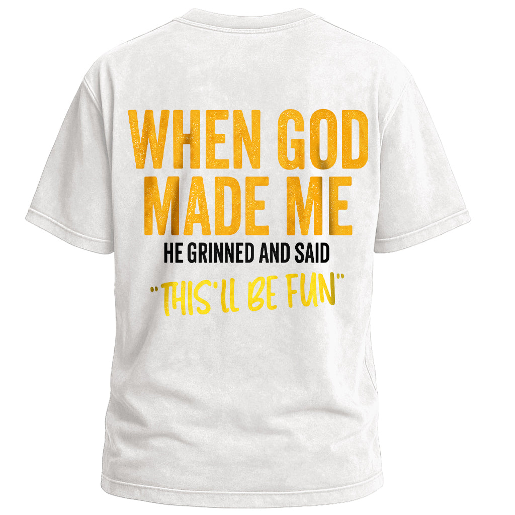 Maglietta "Dio mi ha creato" "Questo sarà divertente"