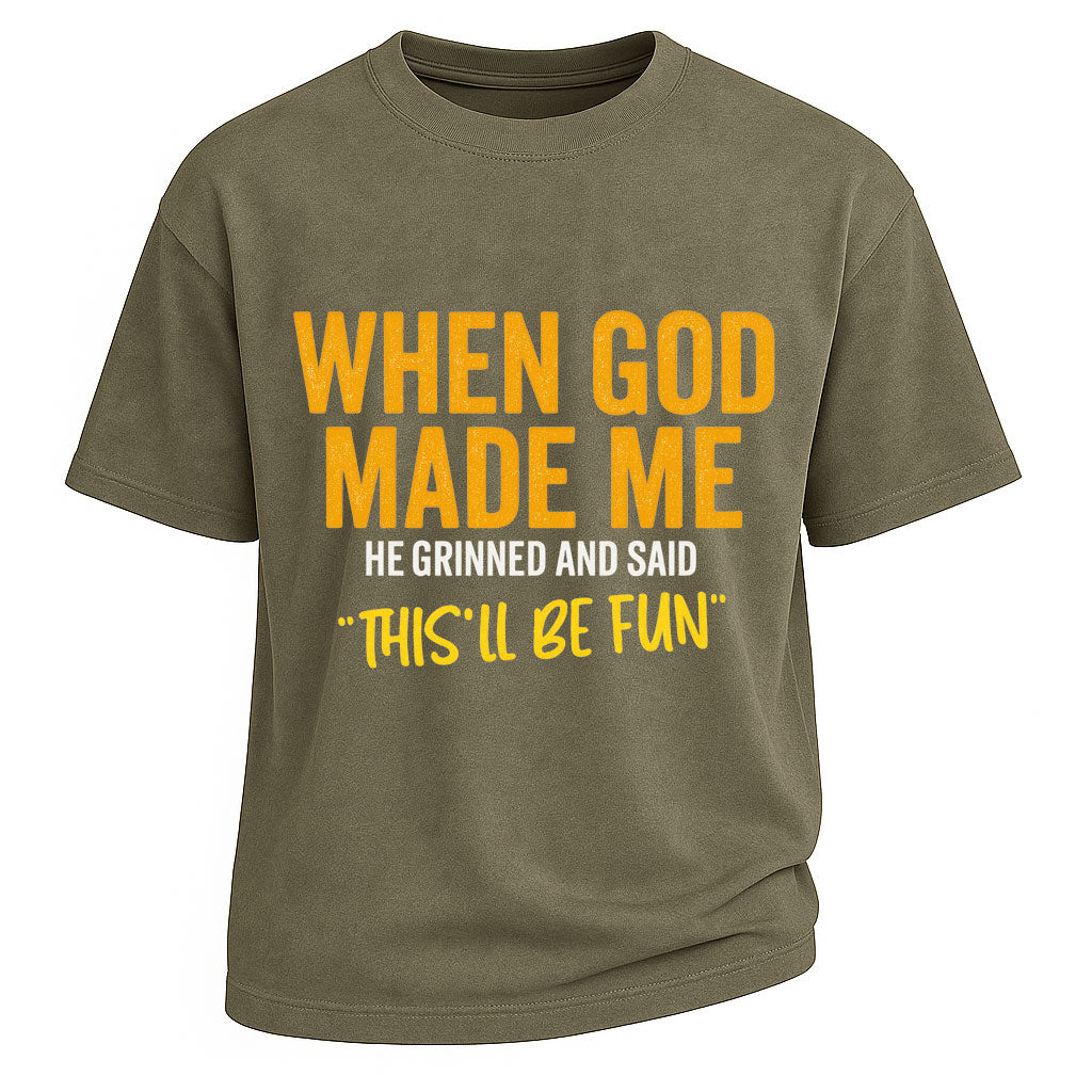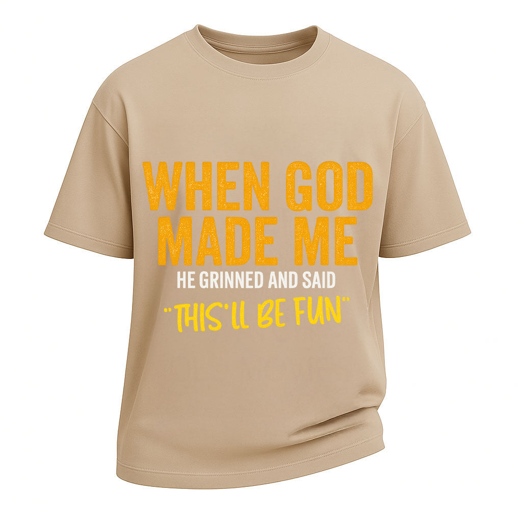 Maglietta "Dio mi ha creato" "Questo sarà divertente"