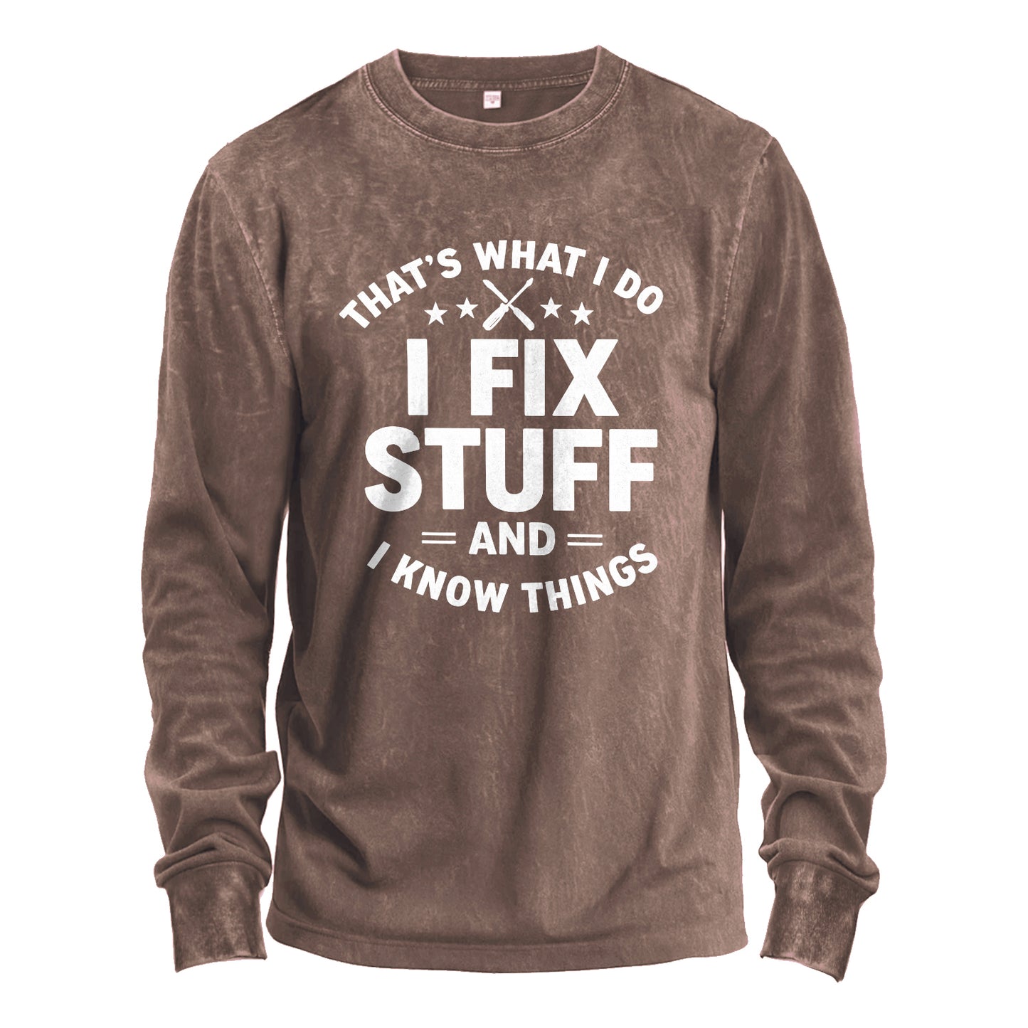 Dieses Langarmshirt ist wie gemacht für Macher und Problemlöser und bringt dein Motto klar zum Ausdruck: „Das ist mein Ding – ich repariere Dinge und kenne mich aus.“ Gefertigt aus robustem 230g-Baumwollstoff und mit einem weichen, gewaschenen Griff versehen, ist es ein lässiges Alltagsshirt mit dem gewissen Etwas einer Werkstatt-Atmosphäre.