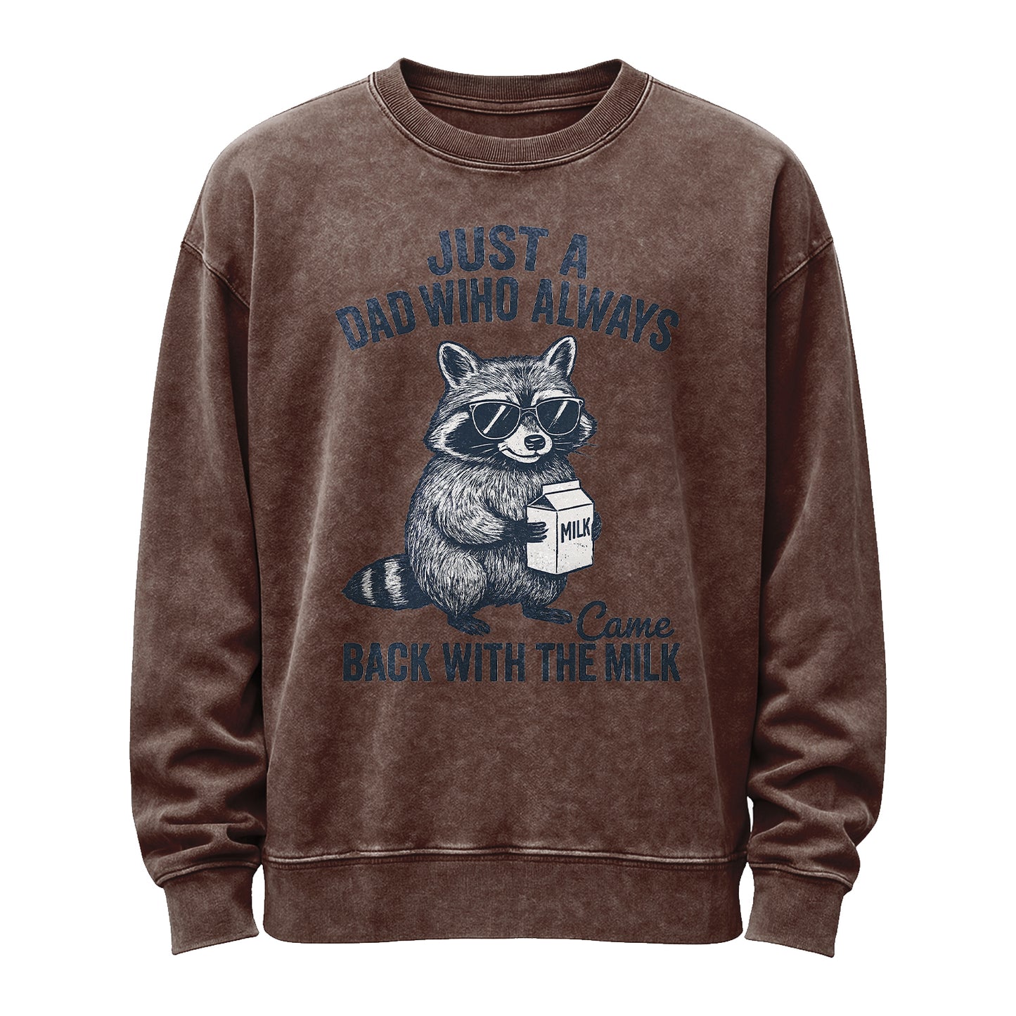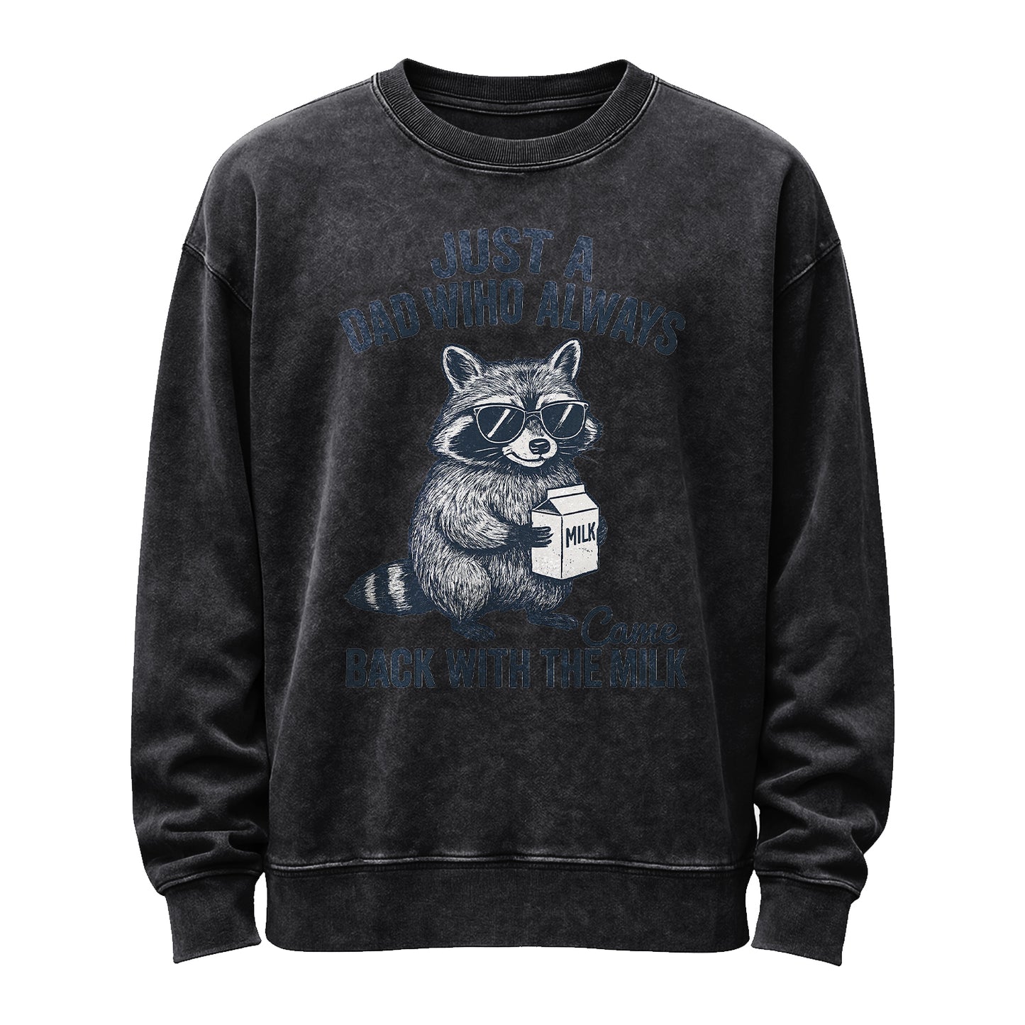 Für alle Väter, die immer Milch mitbringen. Dieses Sweatshirt in Vintage-Waschung und Aschgrau zeigt einen coolen Waschbären mit Sonnenbrille, der einen Milchkarton hält. Der Schriftzug „Just a Dad Who Always Came Back With the Milk“ in kräftigem Marineblau unterstreicht dies. Gefertigt aus hochwertigem 350-g-Fleece (80 % Baumwolle / 20 % Polyester) für ein weiches, angenehmes Tragegefühl direkt nach dem Auspacken.