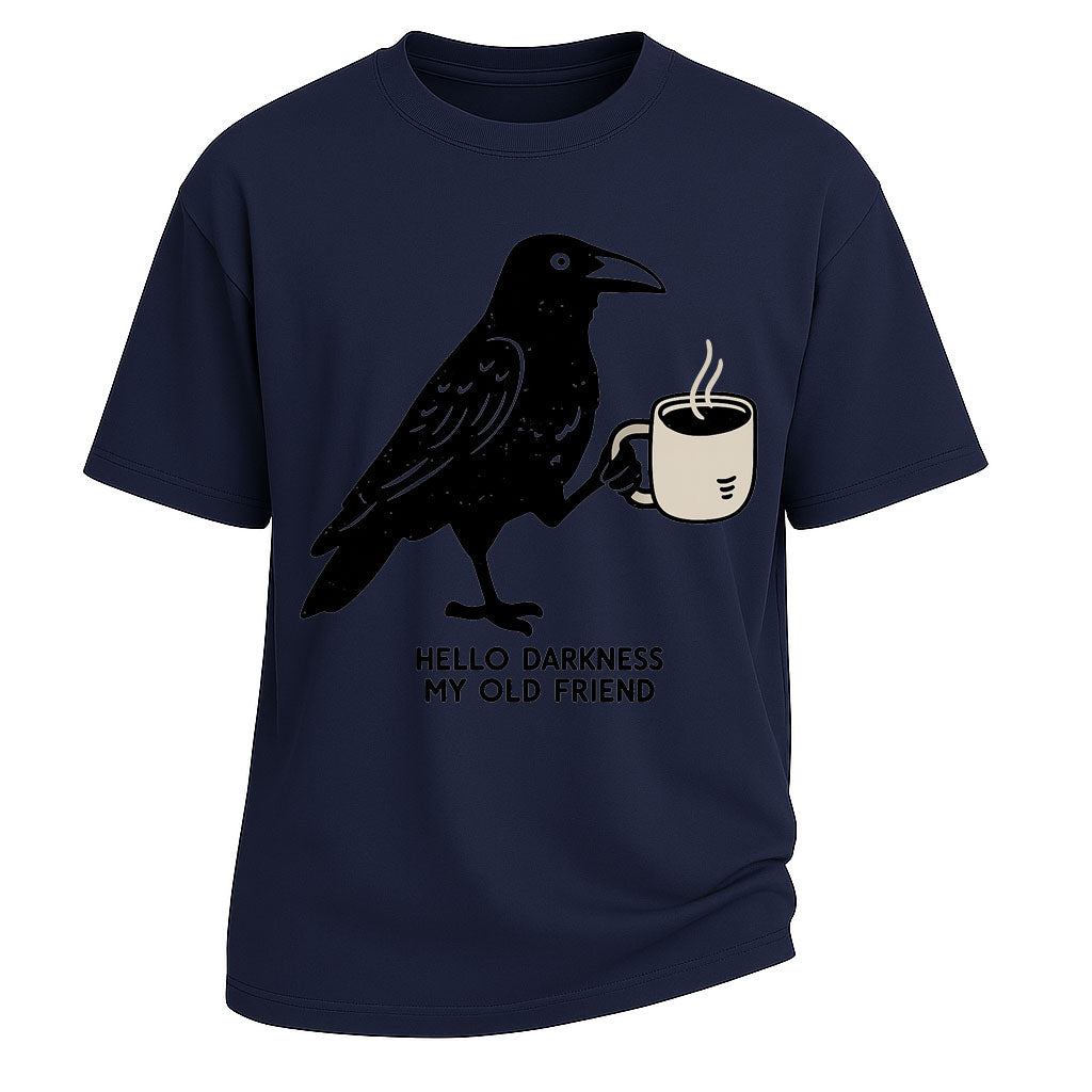 Hallo Dunkelheit, mein alter Freund, Krähenkaffee-Grafik-Kurzarm-T-Shirt