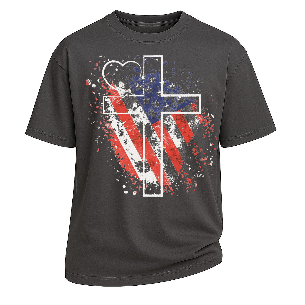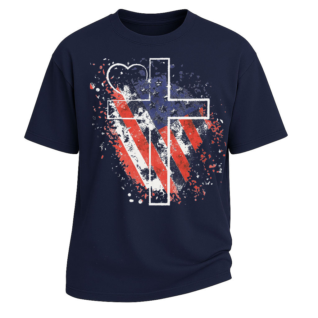 - Stil: Patriotisches T-Shirt mit religiösem Grafikprint